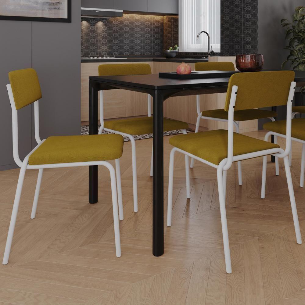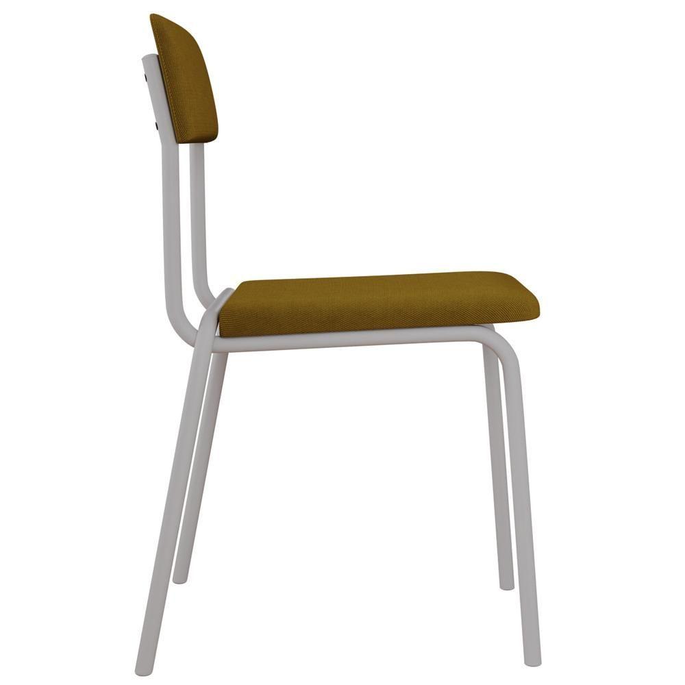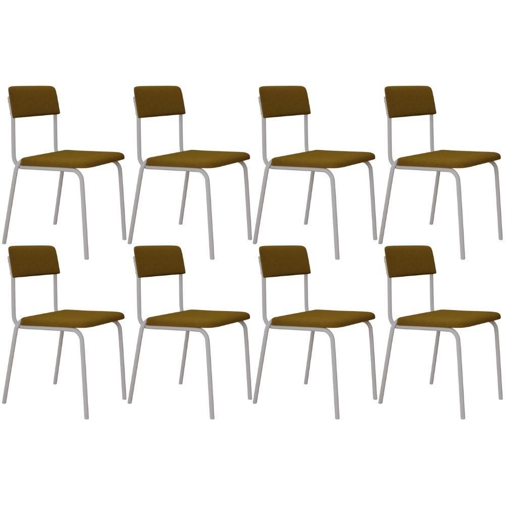 Kit 08 Cadeiras Estofada Para Sala De Jantar Sense Branco C01 Linho Mostarda - Lyam Decor