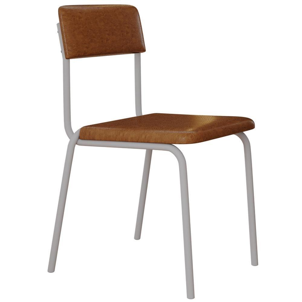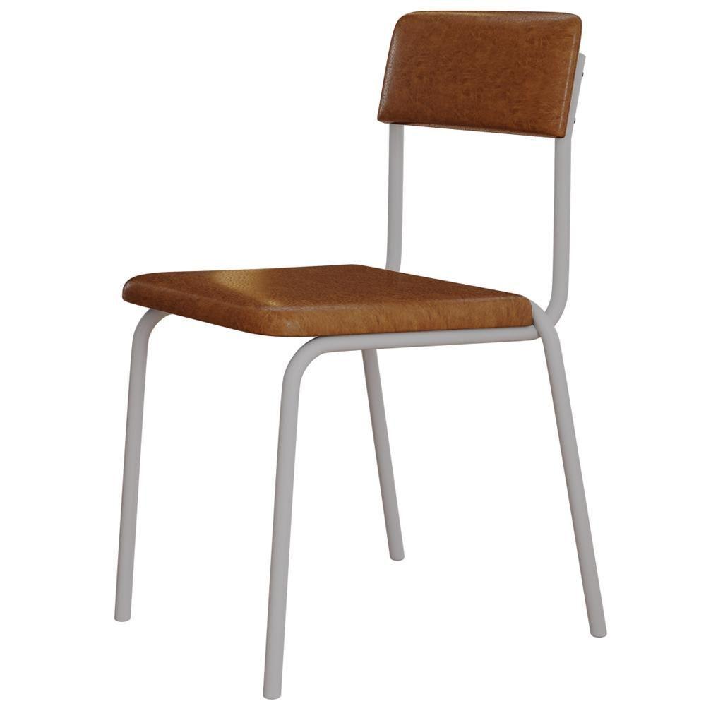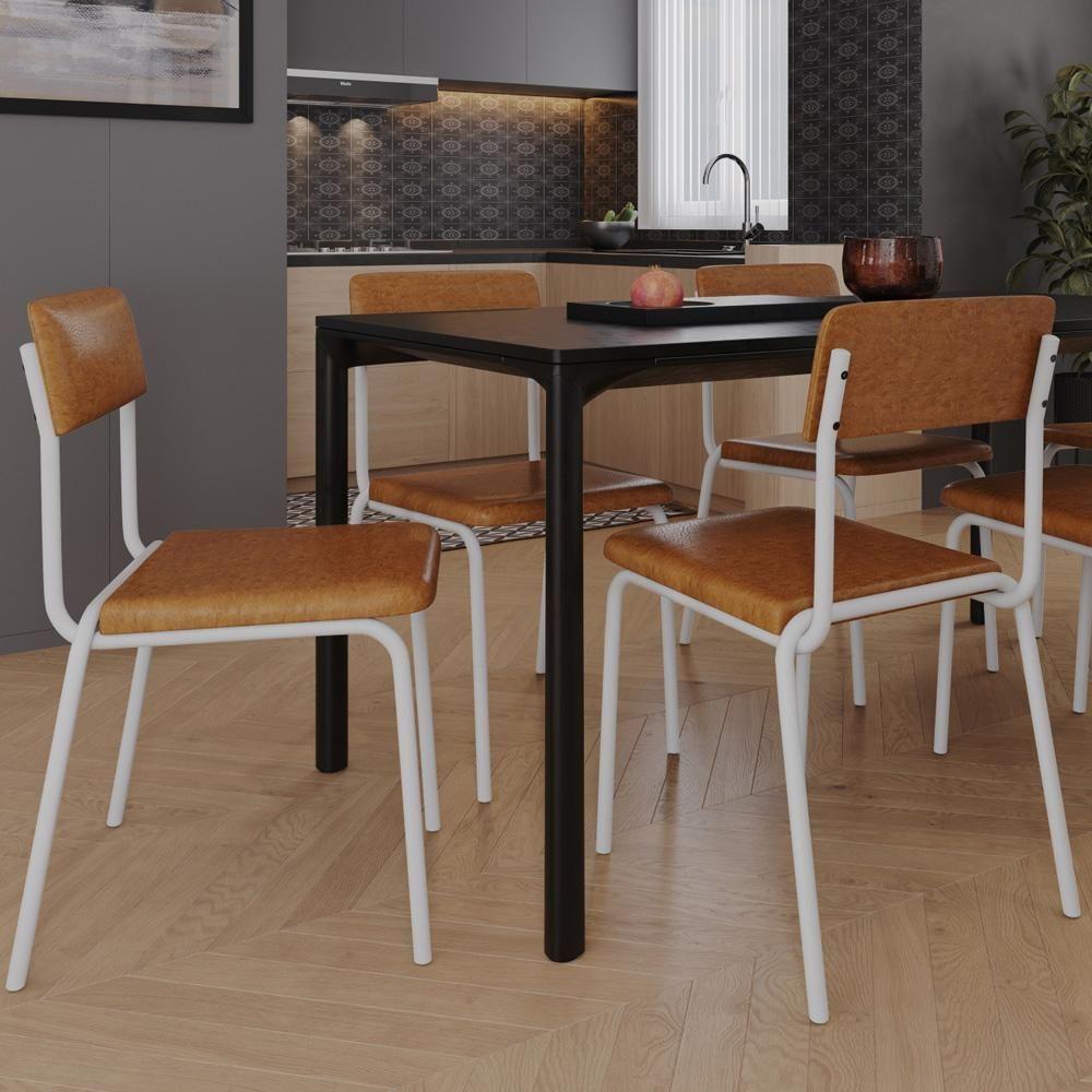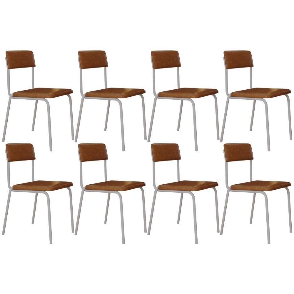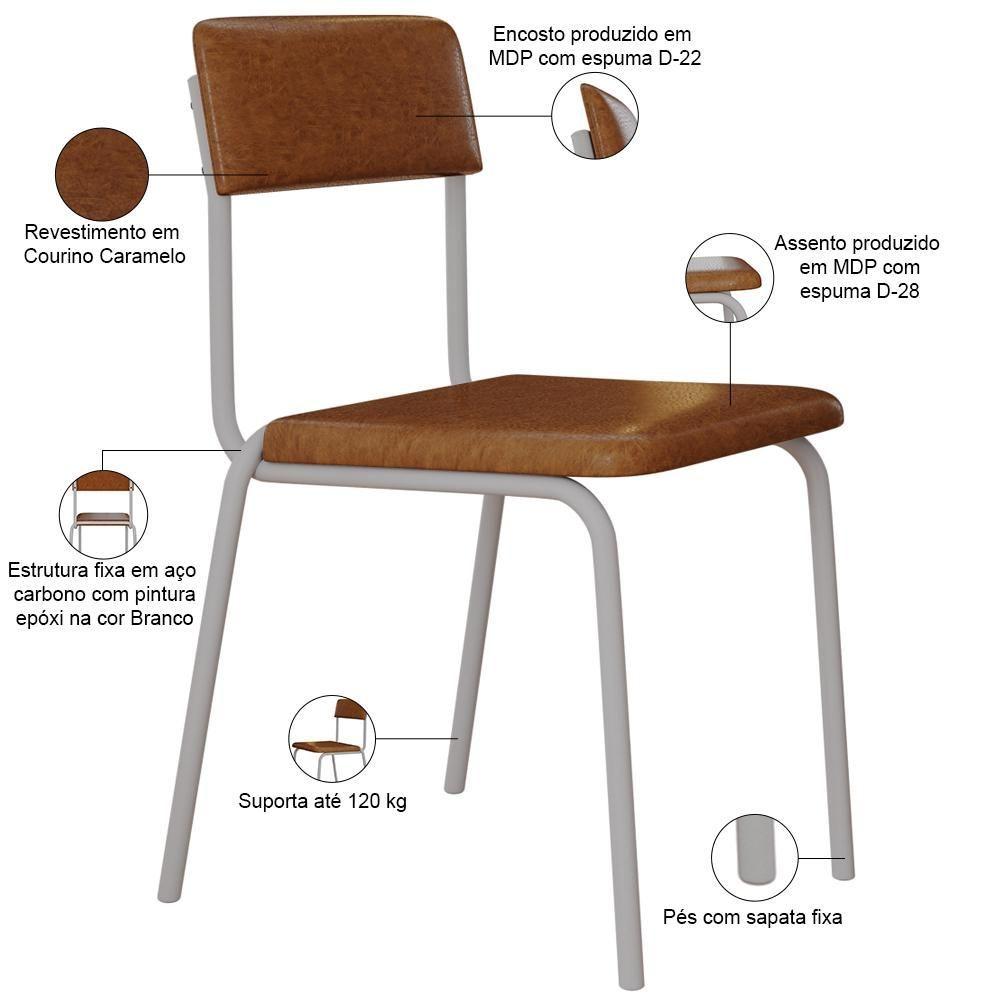 Kit 08 Cadeiras Estofada Para Sala De Jantar Sense Branco C01 Courino Caramelo - Lyam Decor