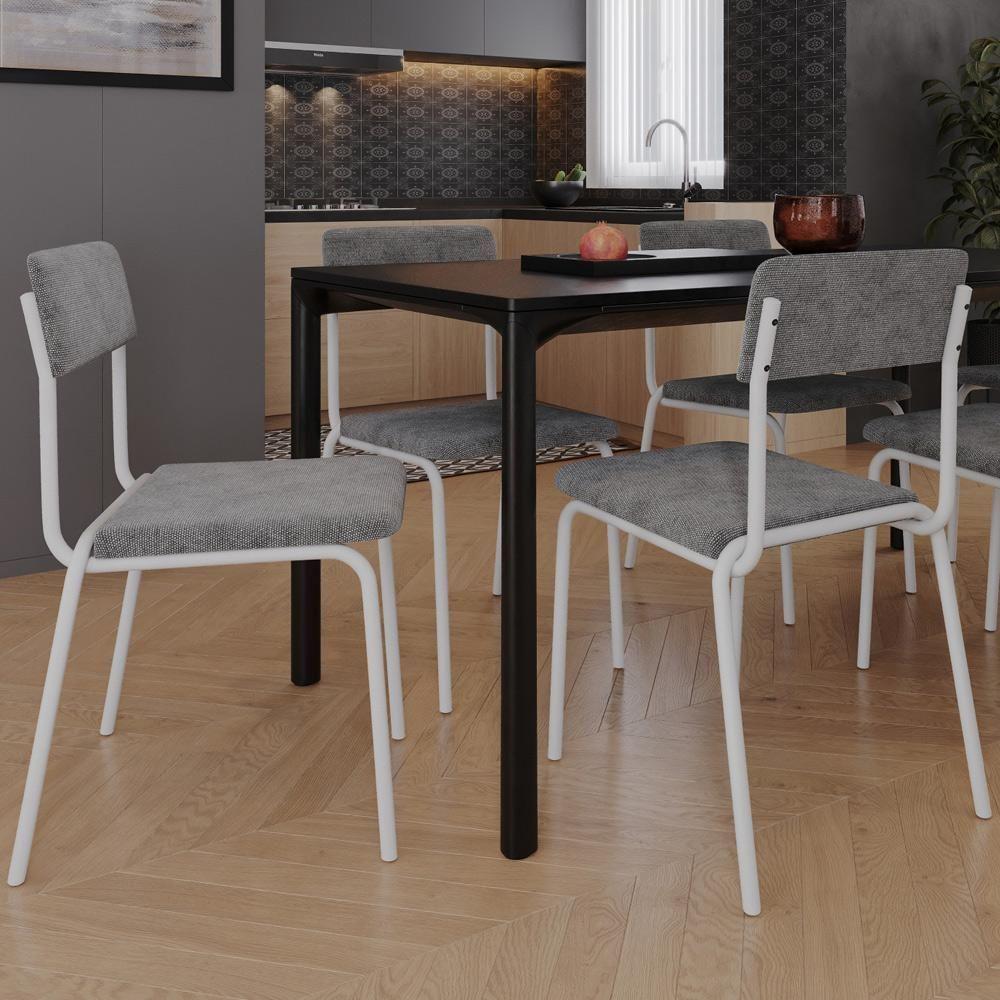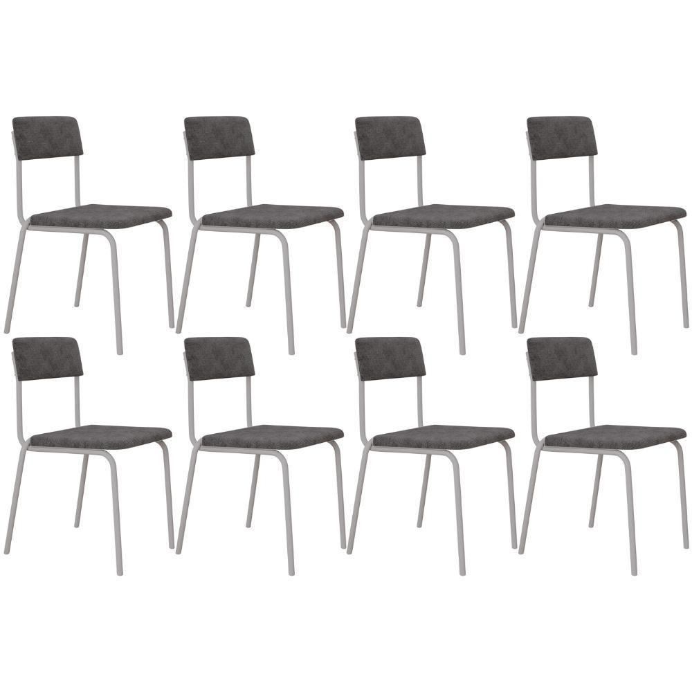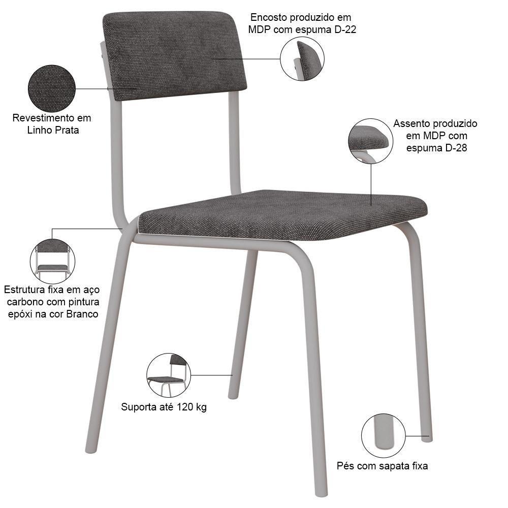 Kit 08 Cadeiras Estofada Para Sala De Jantar Sense Branco C01 Linho Prata - Lyam Decor