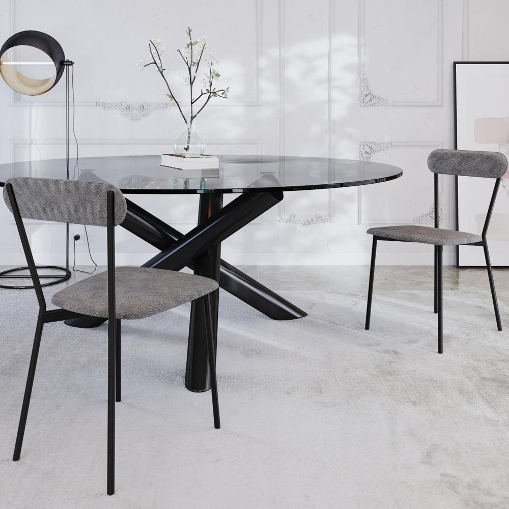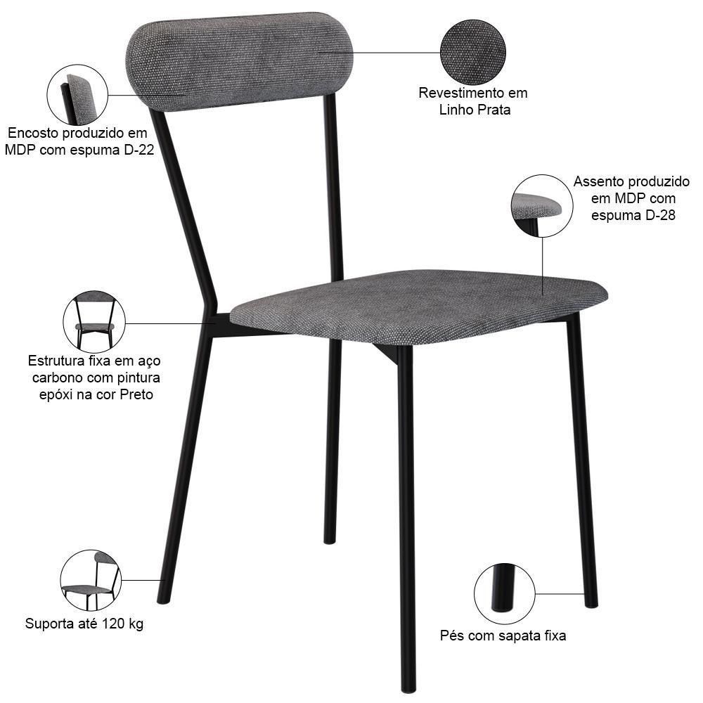 Kit 08 Cadeiras Estofada Para Sala De Jantar Liora Preto C01 Linho Prata - Lyam Decor