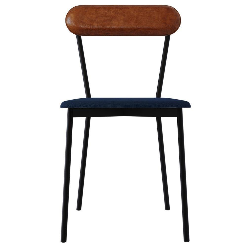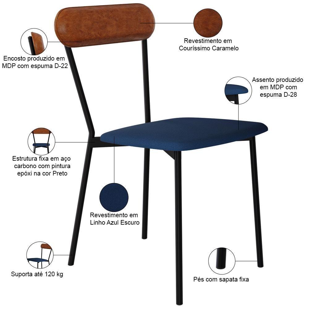 Kit 06 Cadeiras Estofada Para Sala De Jantar Liora Preto C01 Linho Azul Courino Caramelo - Lyam Decor