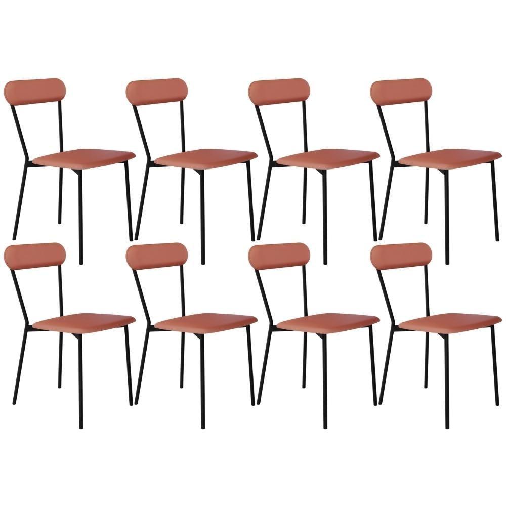 Kit 08 Cadeiras Estofada Para Sala De Jantar Liora Preto C01 Courino Terra Rosê - Lyam Decor