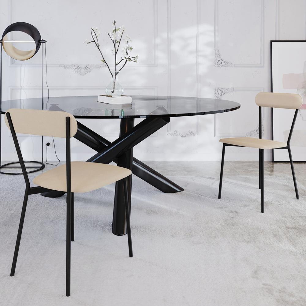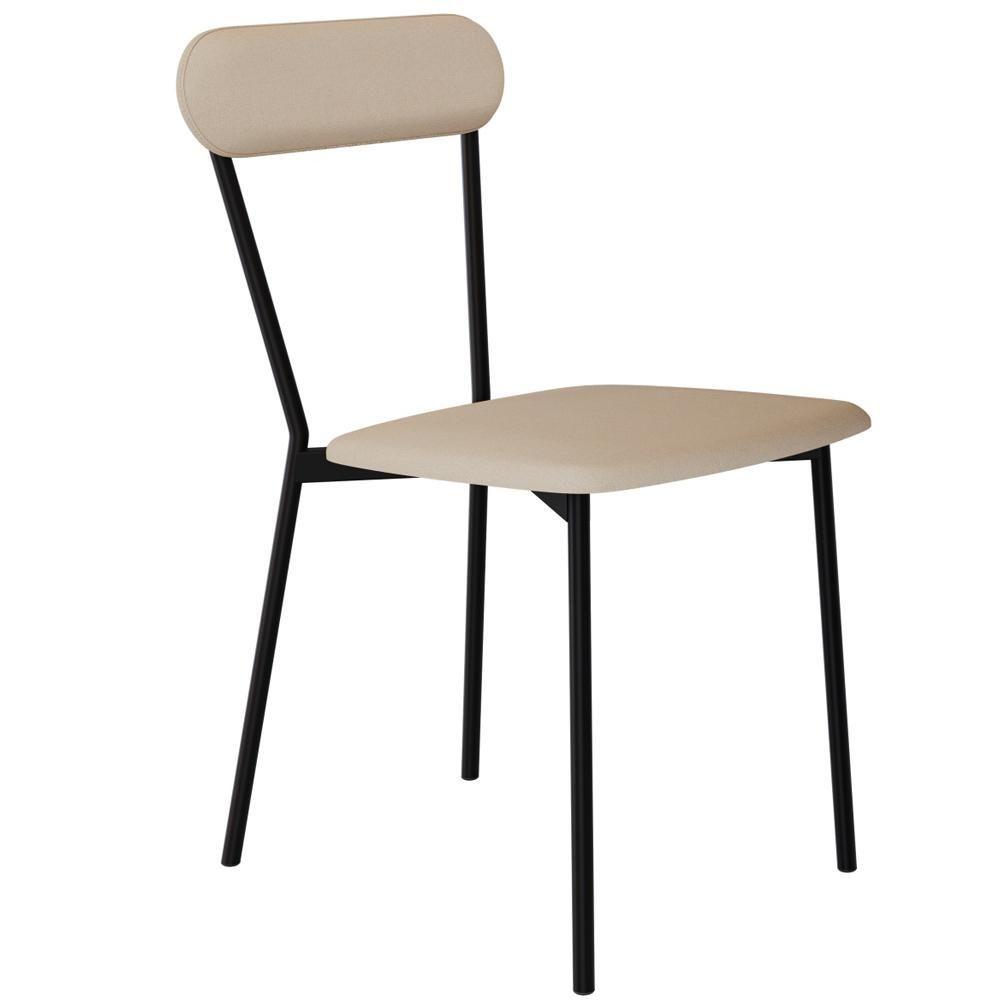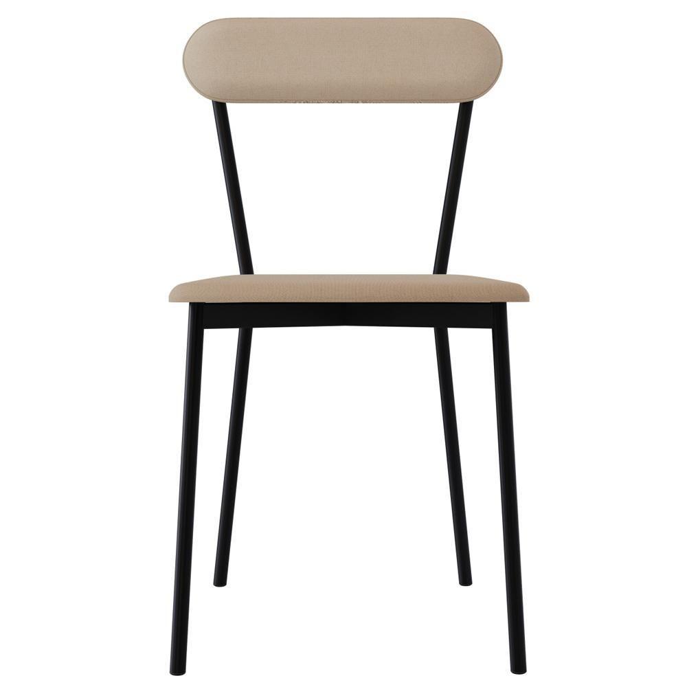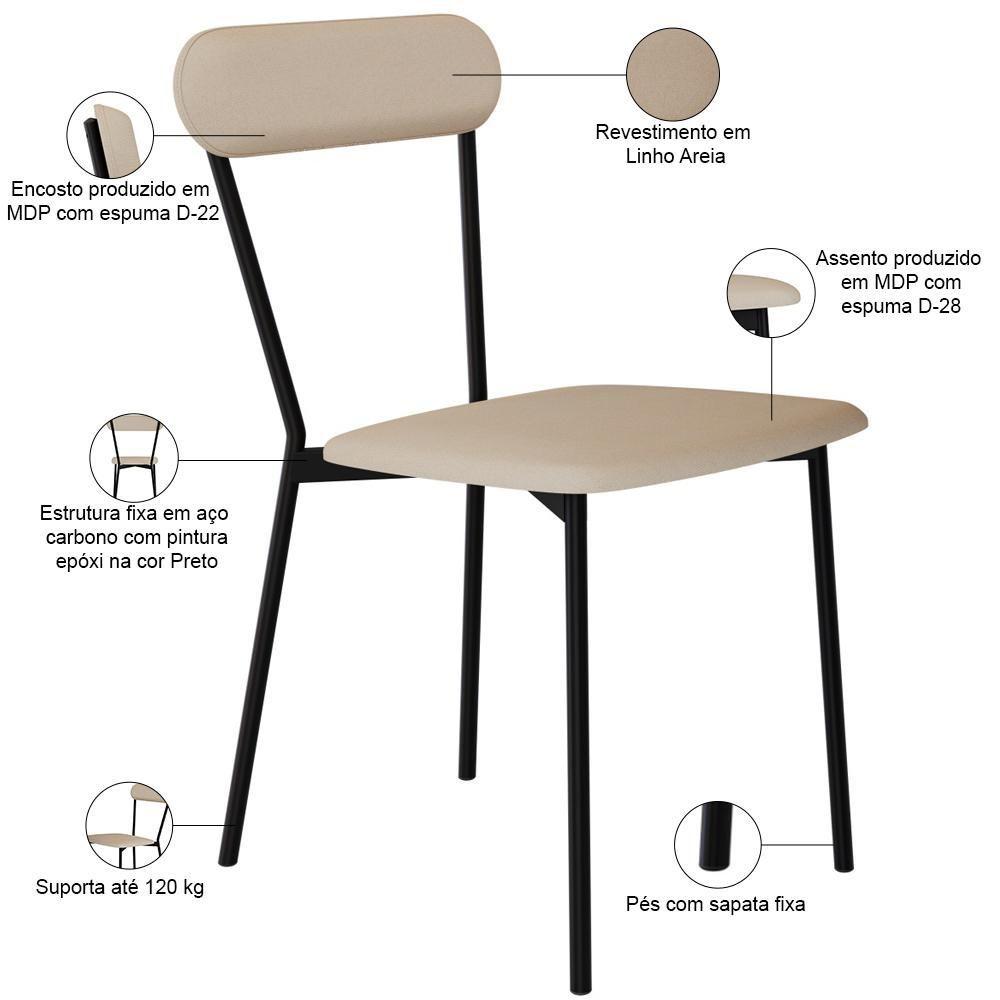 Kit 08 Cadeiras Estofada Para Sala De Jantar Liora Preto C01 Linho Areia - Lyam Decor