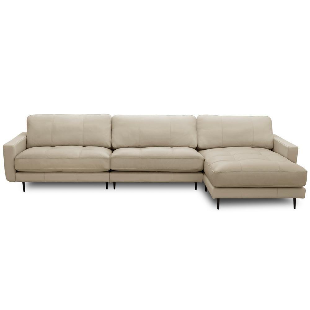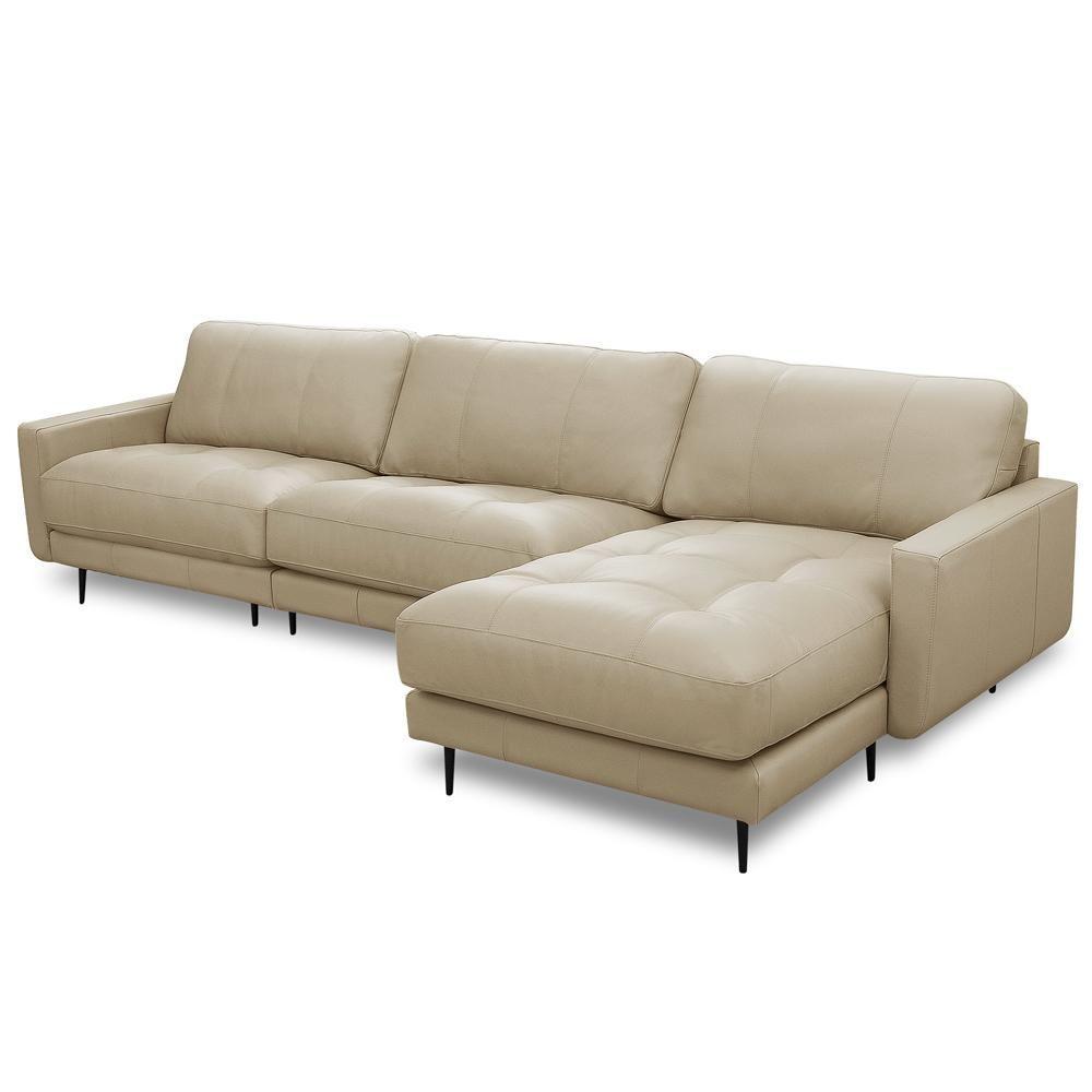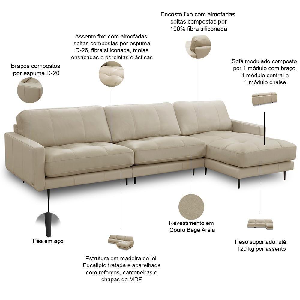 Sofá 4 Lugares Com Chaise Direito Sala Living 316cm Logus L06 Couro Bege Areia - Lyam Decor