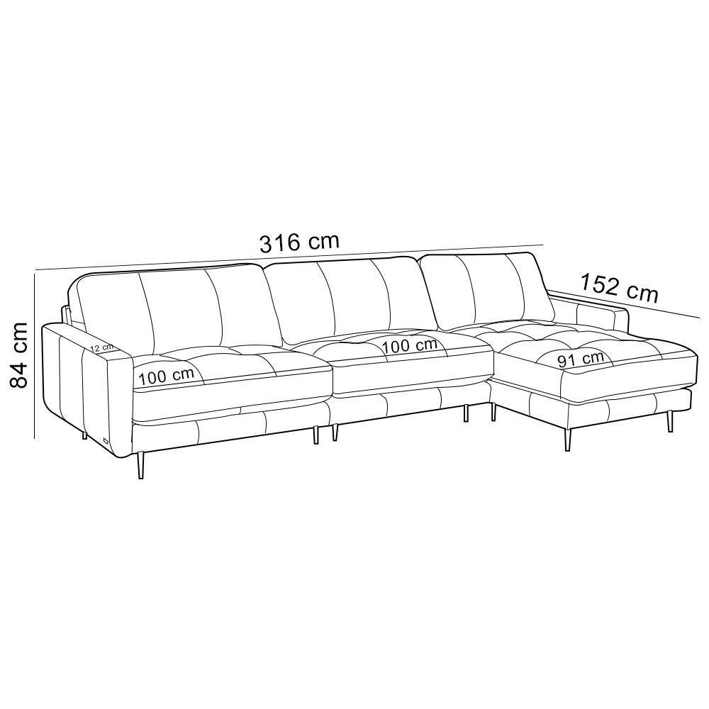 Sofá 4 Lugares Com Chaise Direito Sala Living 316cm Logus L06 Couro Bege Areia - Lyam DecorO Sofá com Chaise Logus 316cm é o equilíbrio perfeito entre estilo industrial e conforto premium!Com pés em aço que dão um toque urbano e moderno, esse sofá 4 lugares transforma qualquer living em um espaço cheio de personalidade. O revestimento em couro de alta qualidade oferece resistência e sofisticação, enquanto a espuma de alta densidade garante um assento macio e ao mesmo tempo firme - perfeito para relaxar por horas. E o melhor? A chaise integrada convida você a esticar as pernas e aproveitar momentos de puro descanso, seja para maratonar sua série favorita ou receber amigos com estilo. Com design arrojado, materiais duráveis e conforto imbatível - o Logus com Chaise é a escolha ideal para quem busca um sofá que une força, beleza e funcionalidade. Dê um upgrade no seu espaço com esse sofá de couro! Dimensões do Produto (L x A x P) 316 x 84 x 152 cm Medidas internas Largura livre assento: 100 cm Profundidade total do assento: 92 cm Largura livre chaise: 91 cm Largura do braço: 12 cm Características: Estrutura em madeira de lei eucalipto tratada e aparelhada com reforços, cantoneiras e chapas em MDF. Revestimento em tecido Couro de alta qualidade na tonalidade Bege Areia. Encosto fixo com almofadas soltas compostas por 100% fibra siliconada. Assento fixo com almofadas soltas compostas por espuma D-26, fibra siliconada e molas ensacadas. Percintas elásticas no assento para maior resistência e durabilidade. Braços compostos por espuma D-20. Pés em aço. Sofá modulado composto por 1 modulo com braço, 1 módulo central e 1 módulo chaise. Peso suportado: Até 120 kg por assento. - Nunca sentar nos braços ou encosto do produto. - Por se tratar de estofado as medidas podem ter uma pequena variação de até 3 cm. - A tonalidade do produto real poderá ter ligeira variação devido o lote de tecidos. - Indicado para uso residencial, sua limpeza deve ser feita com pano levemente umedecido em água limpa, sem esfregar, não utilizar produtos abrasivos, desengordurantes, álcool ou solvente. Observações importantes: - Produto para uso residencial em ambiente interno, não devendo ficar exposto diretamente ao sol, calor e umidade excessivos. - Pode haver alguma diferença de tonalidade entre a imagem e o produto real, por conta do tratamento de imagens e a calibração de cores do seu monitor. - As imagens são meramente ilustrativas, não acompanham objetos de decoração e eletrônicos. - Ao receber a mercadoria, o cliente deve verificar as condições da embalagem, caso haja alguma não assine o de e com nossa para orientações. - Montagem, desmontagem e outras instalações serão de responsabilidade do cliente. Não nos responsabilizamos, no ato da , por subir escadas/elevadores ou pelo por guincho em apartamentos. Eventuais despesas são de responsabilidade do comprador. - Confira as dimensões do produto e certifique-se de que passará normalmente por supostos elevadores, portas, escadas e/ou corredores de sua residência. Cor: Bege | Color: Bege | ColorFamily: Bege | ColorSupplier: Bege | Estilo: Moderno | Material: Madeira de Eucalipto, Espuma D-26 | MaterialFamily: Eucalipto, Espuma | Model: Logus | OriginCountry: | OriginState: PR | ProductContents: 01 Sofá | Profundidade: 152 cm | SupplierSimpleName: Sofá 4 Lugares com Chaise Direito Sala Living 316cm Logus L06 Couro Bege Areia - Lyam Decor | ProductLength: 152 cm | ProductInstructions: Produto para uso em ambiente interno, nao devendo ficar exposto ao sol, calor e umidade excessivos.
