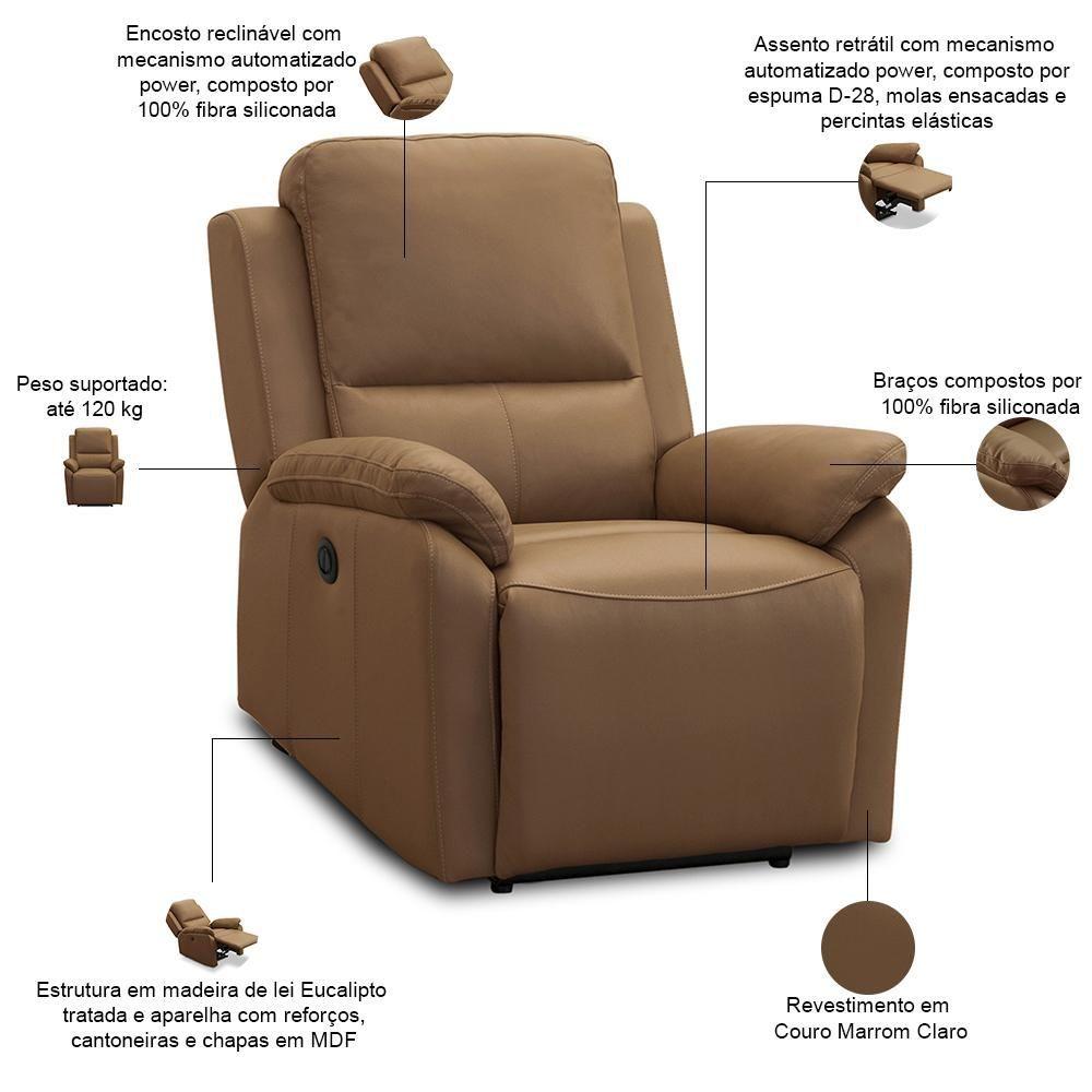 Poltrona Do Papai Retrátil Reclinável Elétrica Aniche L06 Couro Marrom Claro - Lyam Decor