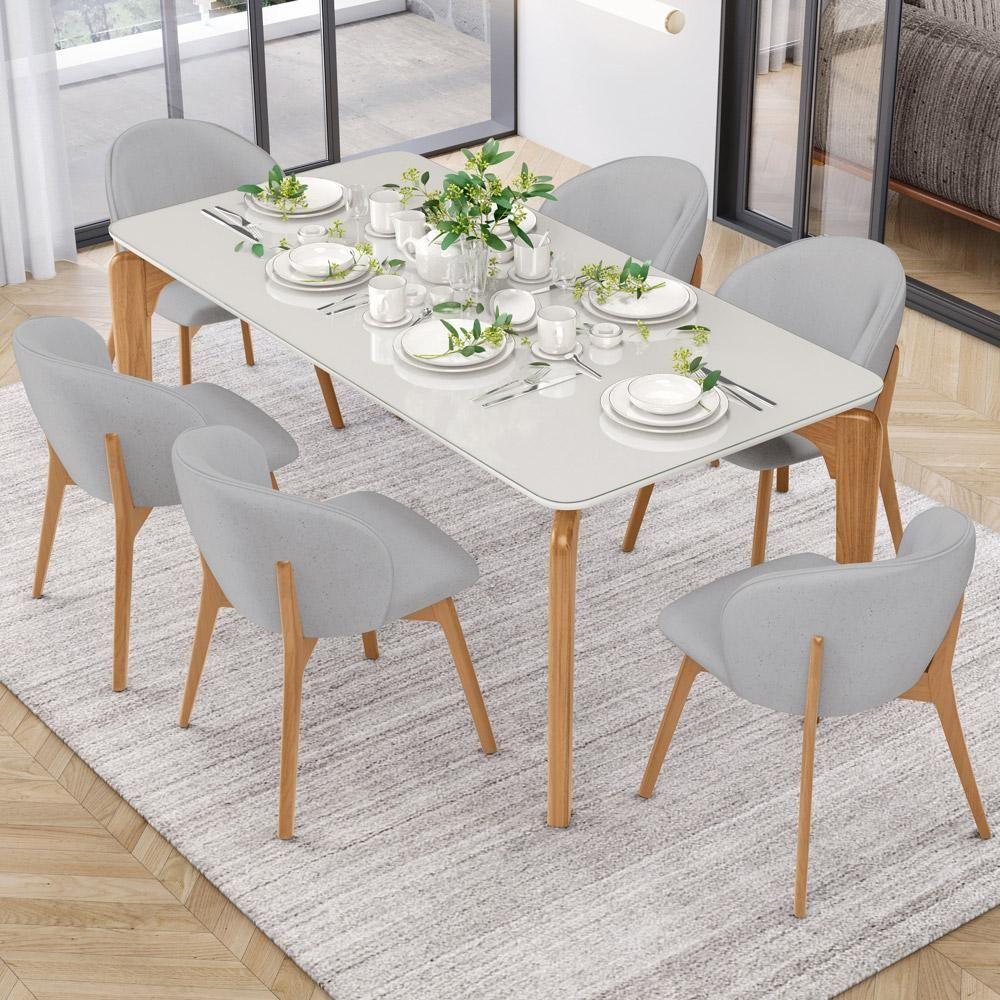 Kit 04 Cadeiras De Jantar E Estar Living Estofada Mia L02 Linho Cinza - Lyam Decor