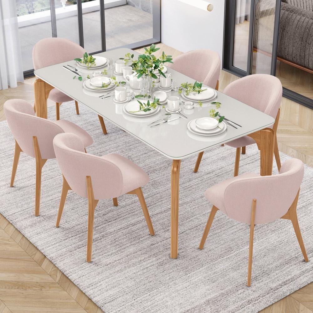 Kit 04 Cadeiras De Jantar E Estar Living Estofada Mia L02 Bouclê Rosê - Lyam Decor