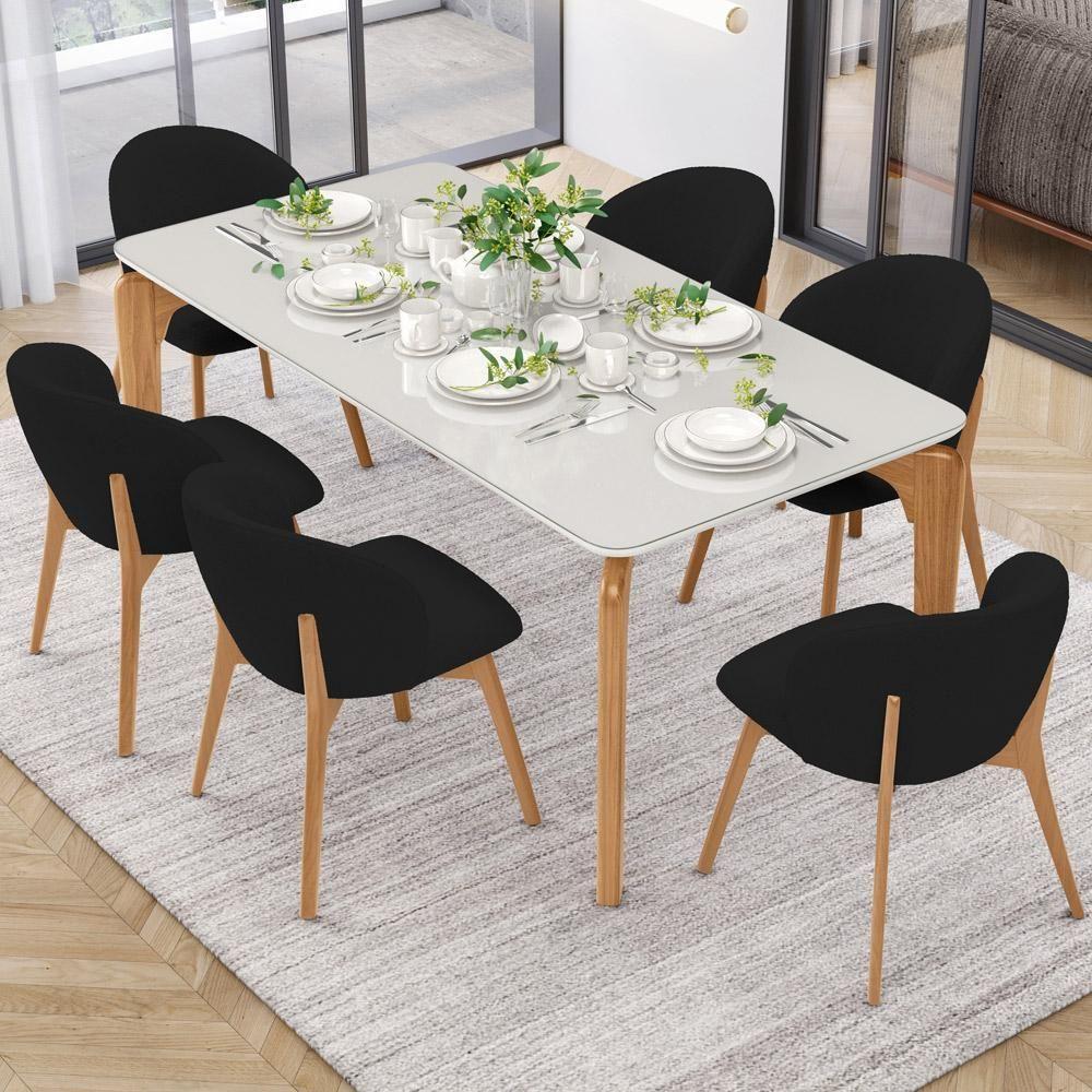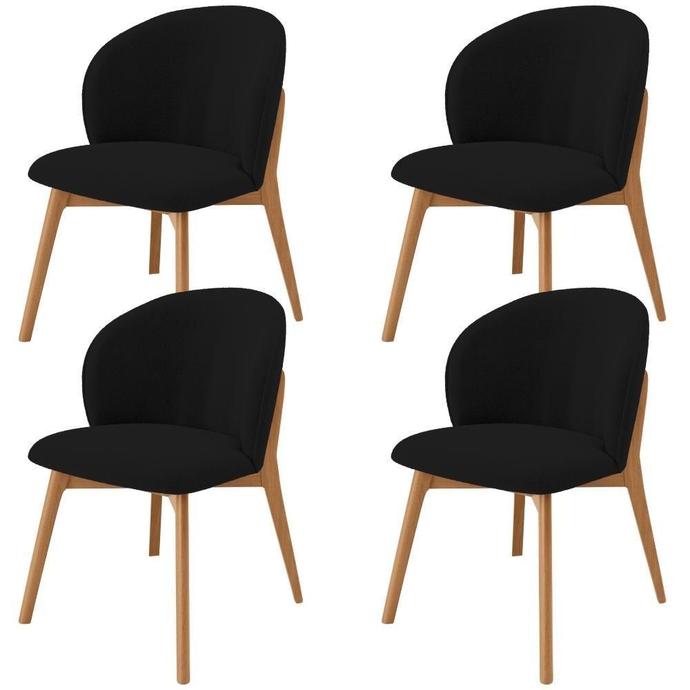 Kit 04 Cadeiras De Jantar E Estar Living Estofada Mia L02 Bouclê Preto - Lyam Decor