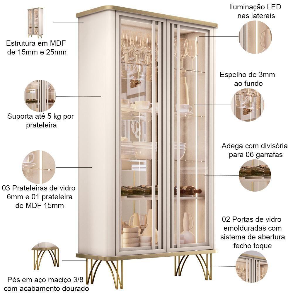 Kit Aparador Buffet Bar Living Santiago Com Cristaleira Adega Síria B01 Off White Champagne - Lyam Decor