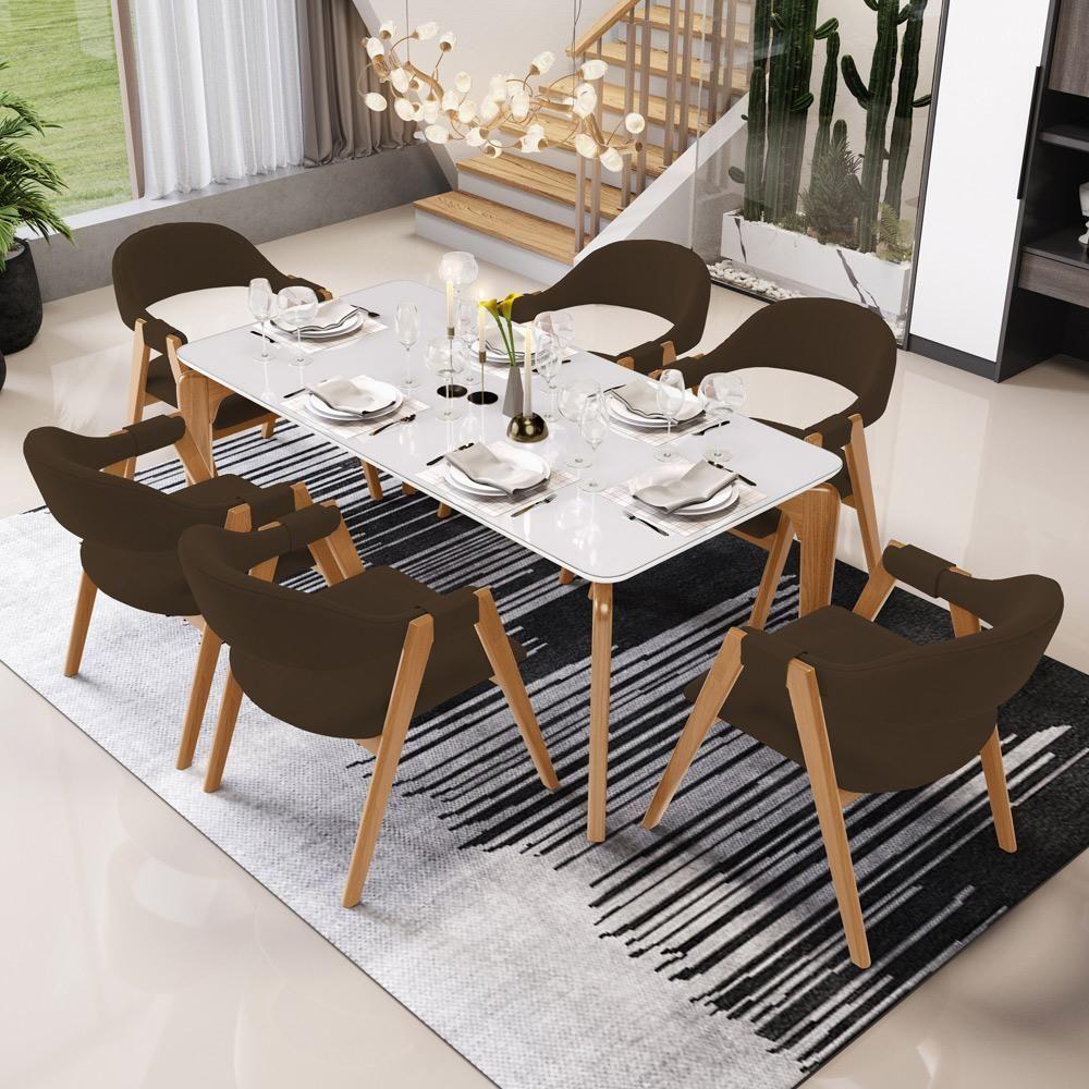 Kit 06 Cadeiras De Jantar E Estar Living Estofada Nadja L02 Suede Marrom - Lyam Decor