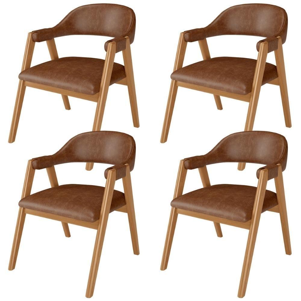 Kit 04 Cadeiras De Jantar E Estar Living Estofada Nadja L02 Couríssimo Marrom - Lyam Decor O Kit 04 Cadeiras de Jantar e Estar Living Estofada Nadja, das Lyam Decor, é a escolha perfeita para criar uma sala de jantar moderna e acolhedora. Com seu design curvo e pés de madeira maciça envernizada, essa cadeira estofada traz elegância e sofisticação ao ambiente. Além disso, é tapeçada com espuma d-26, o que proporciona um conforto excepcional, permitindo que você desfrute de momentos incríveis à mesa. Já o design orgânico combina beleza e modernidade, tornando-a uma peça única, enquanto os braços adicionam um toque extra de conforto e estilo. A Cadeira Nadja é o equilíbrio perfeito entre funcionalidade e design, uma vez que pode facilmente ser utilizada em diversos ambientes, como espaços comerciais, recepção de hotel e eventos, até como poltrona para sala de estar. Adicione esse elemento indispensável à sua decoração e transforme qualquer ambiente em um lugar especial. Não perca a oportunidade de adquirir essa cadeira de jantar que vai encantar a todos.Dimensões do produto (L x A x P) 59,5 cm x 81 cm x 70 cmMedidas internas Altura do assento ao chão: 47 cm Largura do assento: 53,5 cm Profundidade do assento: 47 cm Altura do encosto: 37 cm Altura das braças: 22 cm Peso aproximado: 8 kgCaracterísticas: Estrutura de Madeira de Eucalipto tratado de reserva legalizada, correto ecologicamente. Revestimento em Couríssimo na cor Marrom. Assento e encosto com espuma D-26. Peso máximo suportado por cadeira até 150 kg. Pés em madeira envernizados. Design orgânico, com linhas curvas. Produto entregue montado.- Por se tratar de estofado as medidas podem ter uma pequena variação de até 3 cm. - A tonalidade do produto real poderá ter ligeira variação devido o lote de tecidos. - A limpeza deve ser feita com pano levemente umedecido em água limpa, sem esfregar, não utilizar produtos abrasivos, desengordurantes, álcool ou solvente.Observações importantes: - Produto para uso residencial em ambiente interno, não devendo ficar exposto diretamente ao sol, calor e umidade excessivos. - Pode haver alguma diferença de tonalidade entre a imagem e o produto real, por conta do tratamento de imagens e a calibração de cores do seu monitor. - As imagens são meramente ilustrativas, não acompanham objetos de decoração e eletrônicos. - Ao receber a mercadoria, o cliente deve verificar as condições da embalagem, caso haja alguma avaria não assine o comprovante de recebimento. - Montagem, desmontagem e outras instalações serão de responsabilidade do cliente. Não nos responsabilizamos, no ato da entrega, por subir escadas/elevadores ou pelo transporte por guincho em apartamentos. Eventuais despesas são de responsabilidade do comprador. - Confira as dimensões do produto e certifique-se de que passará normalmente por supostos elevadores, portas, escadas e/ou corredores de sua residência. NA