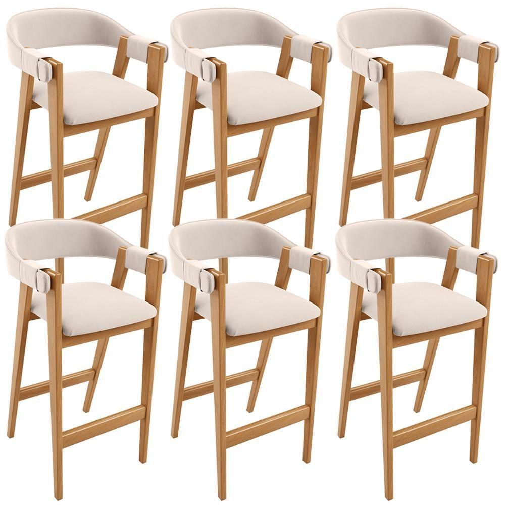 Kit 06 Banquetas Alta Bar Cozinha Sala De Jantar Bar Nadja L02 Suede Bege - Lyam Decor