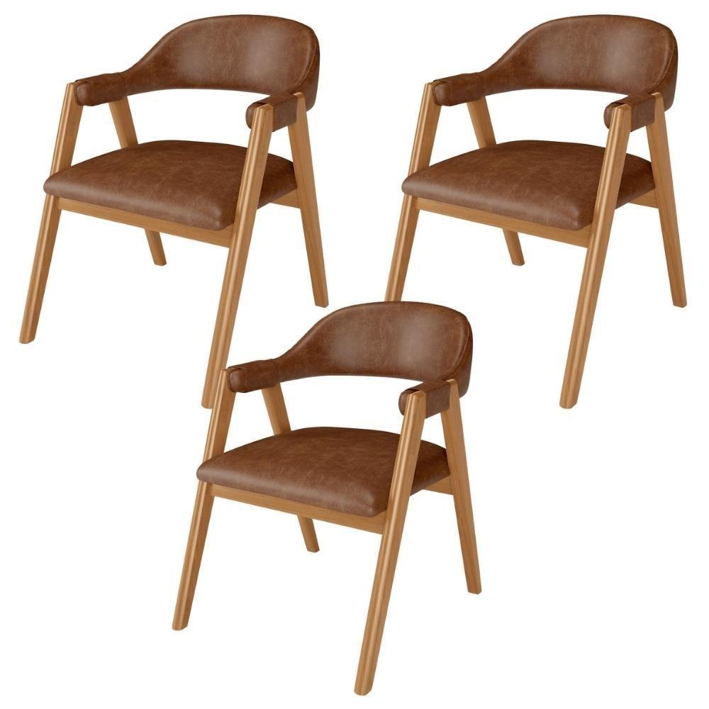Kit 03 Cadeiras De Jantar E Estar Living Estofada Nadja L02 Couríssimo Marrom - Lyam Decor
