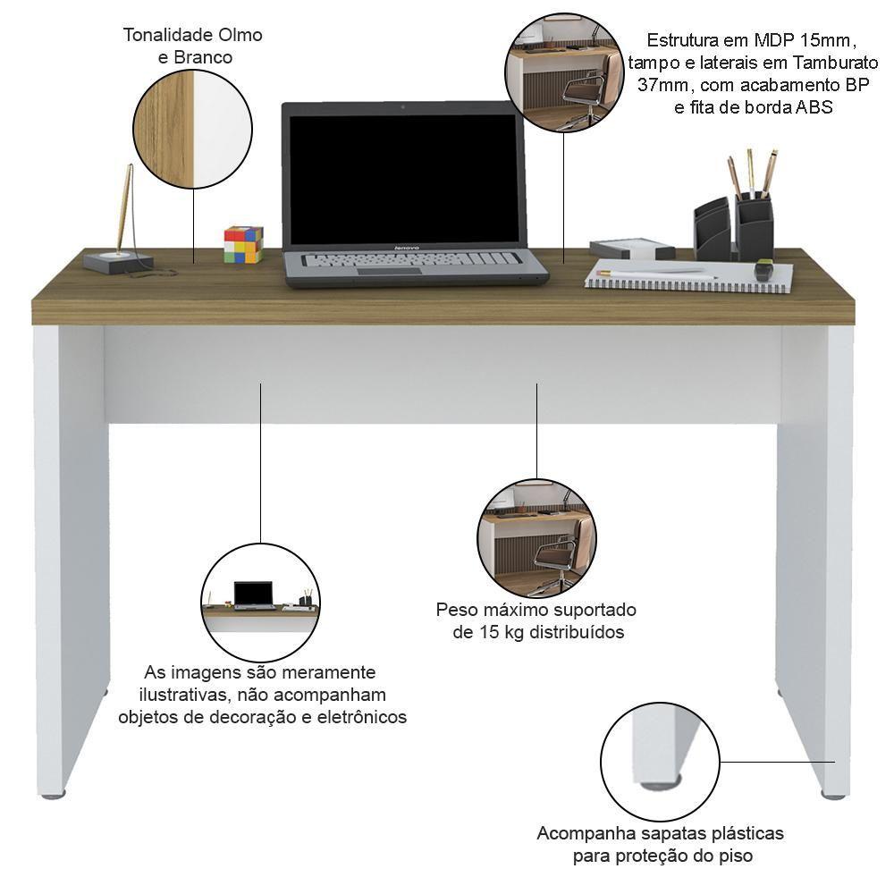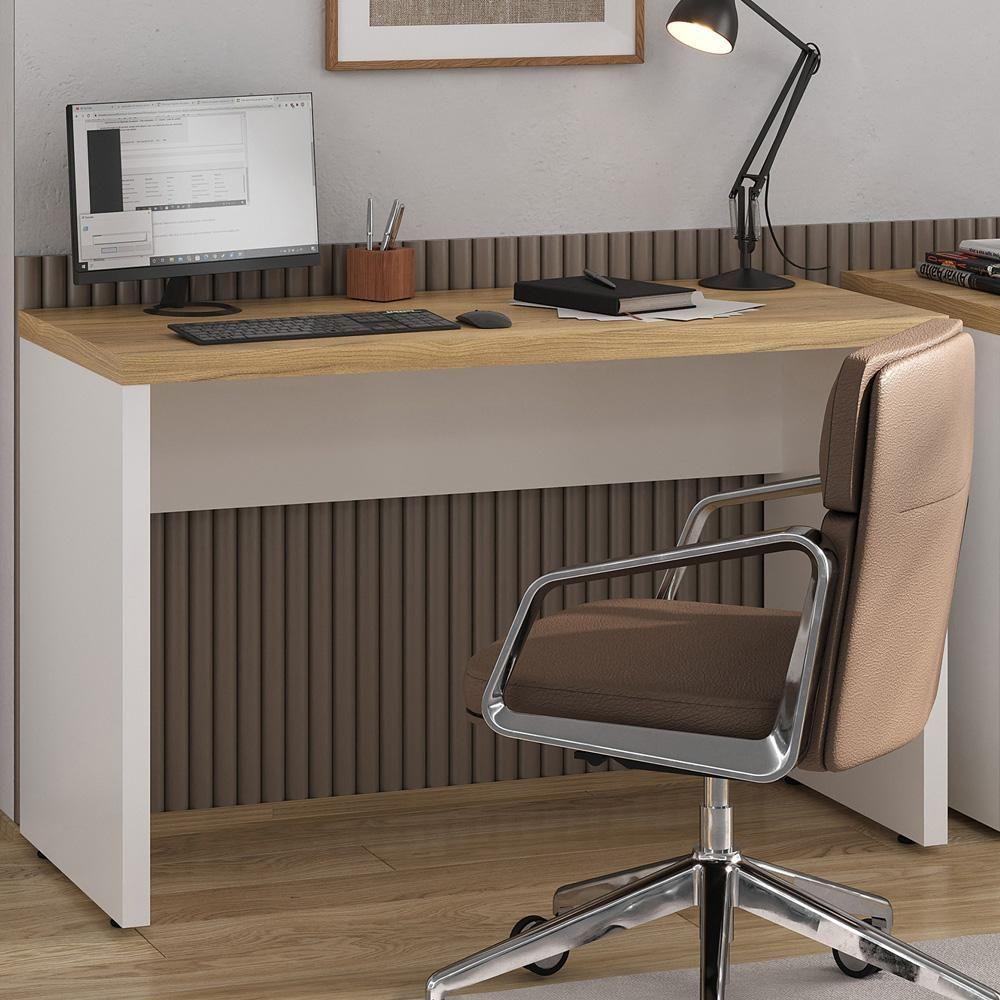 Mesa Para Escritório Escrivaninha Home Office 120cm Orly A02 Olmo Branco - Lyam Decor