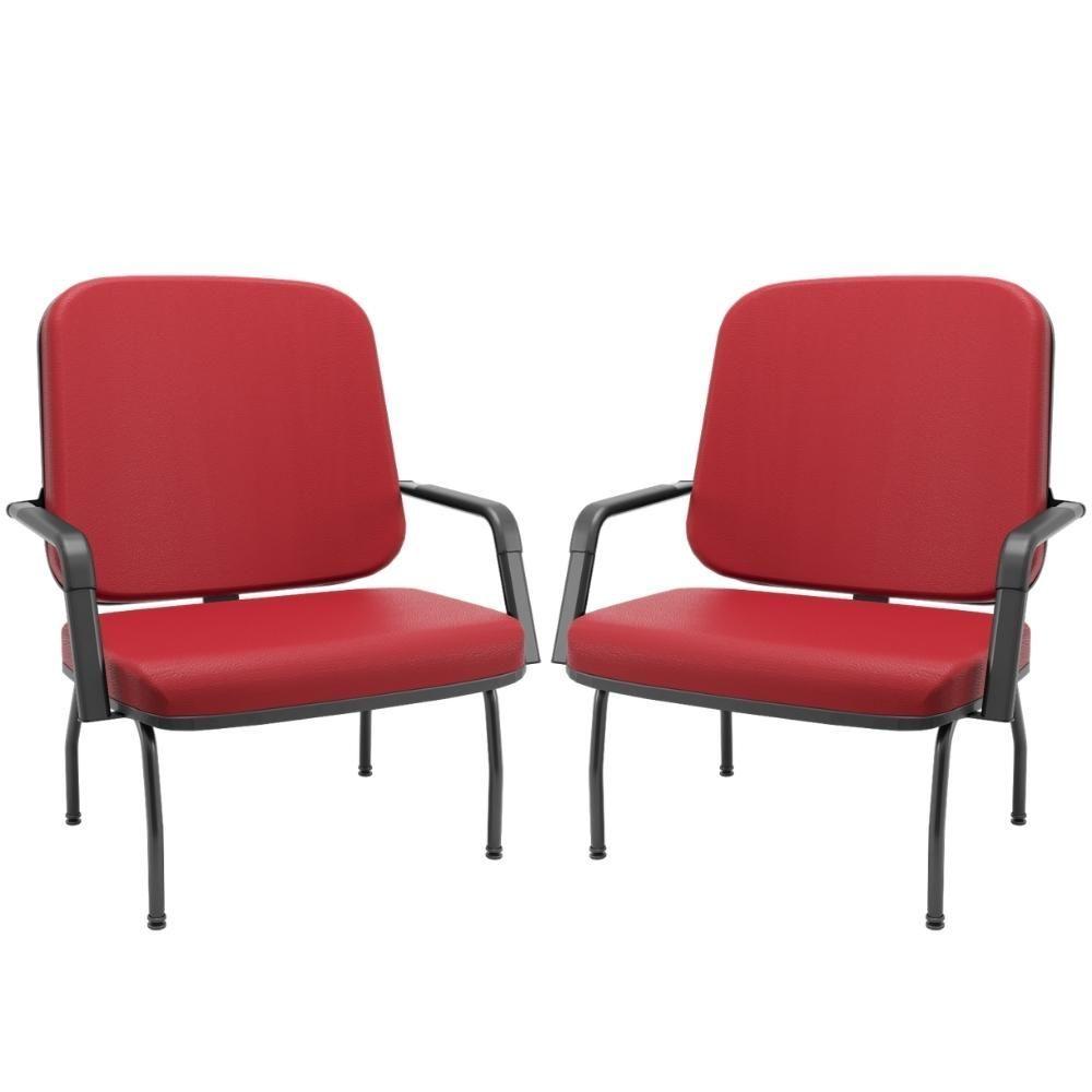 Kit 02 Cadeiras De Escritório Recepção Com Braço Fixa Preta Magno P03 Vinil Vermelho - Lyam Decor