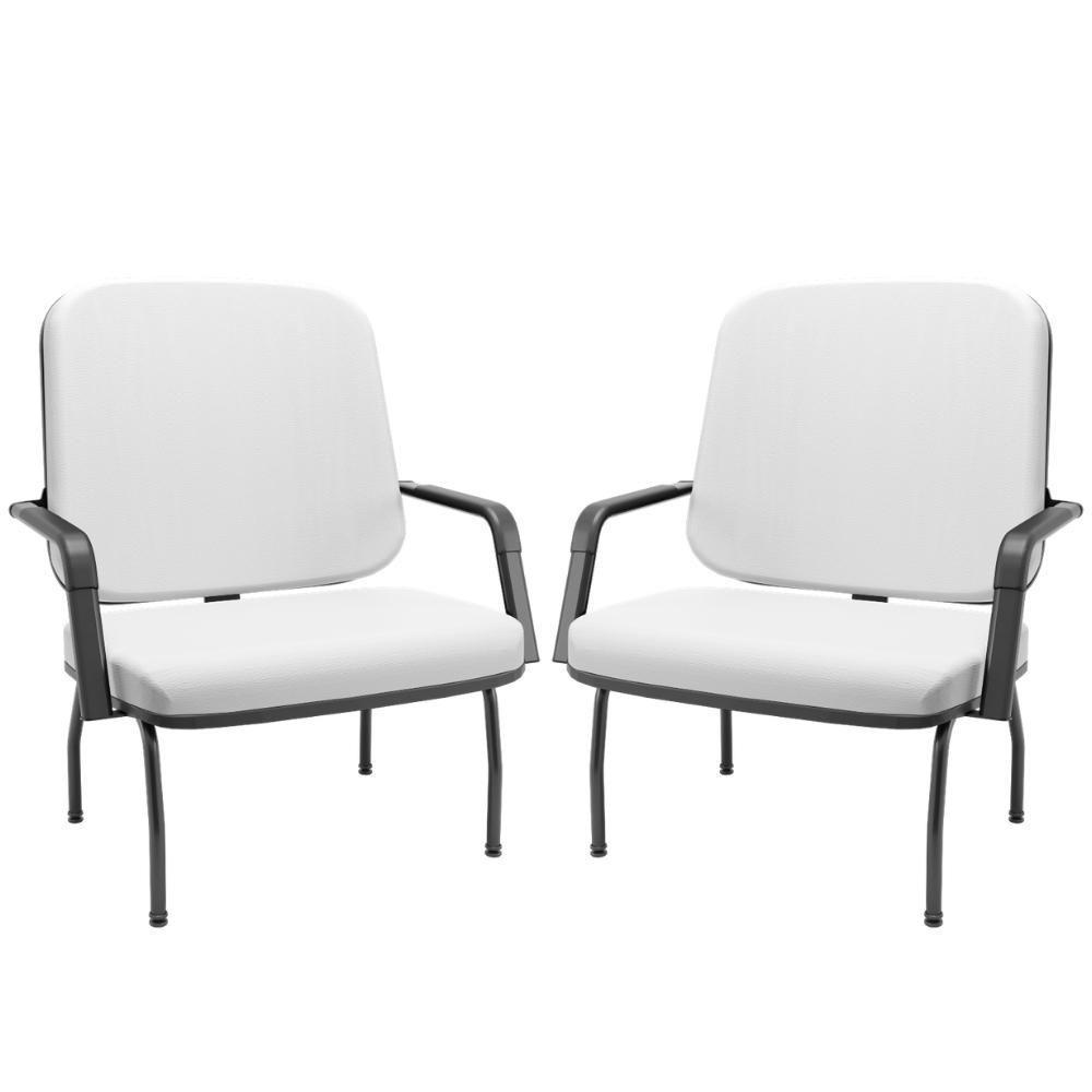 Kit 02 Cadeiras De Escritório Recepção Com Braço Fixa Preta Magno P03 Vinil Branco - Lyam Decor