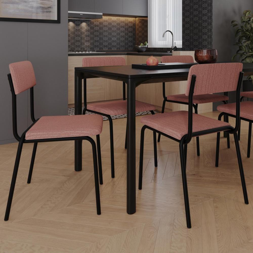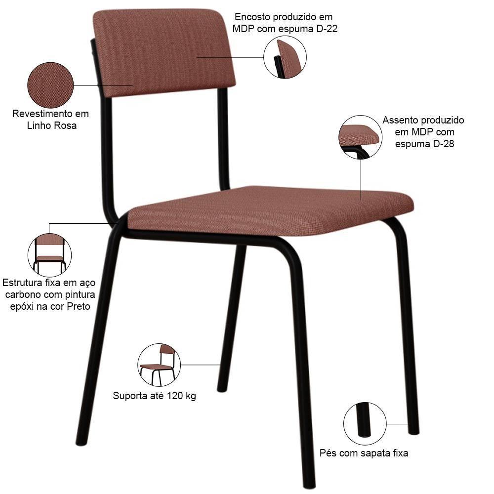 Kit 08 Cadeiras Estofada Para Sala De Jantar Sense Preto C01 Linho Rosa - Lyam Decor