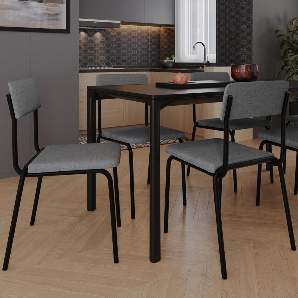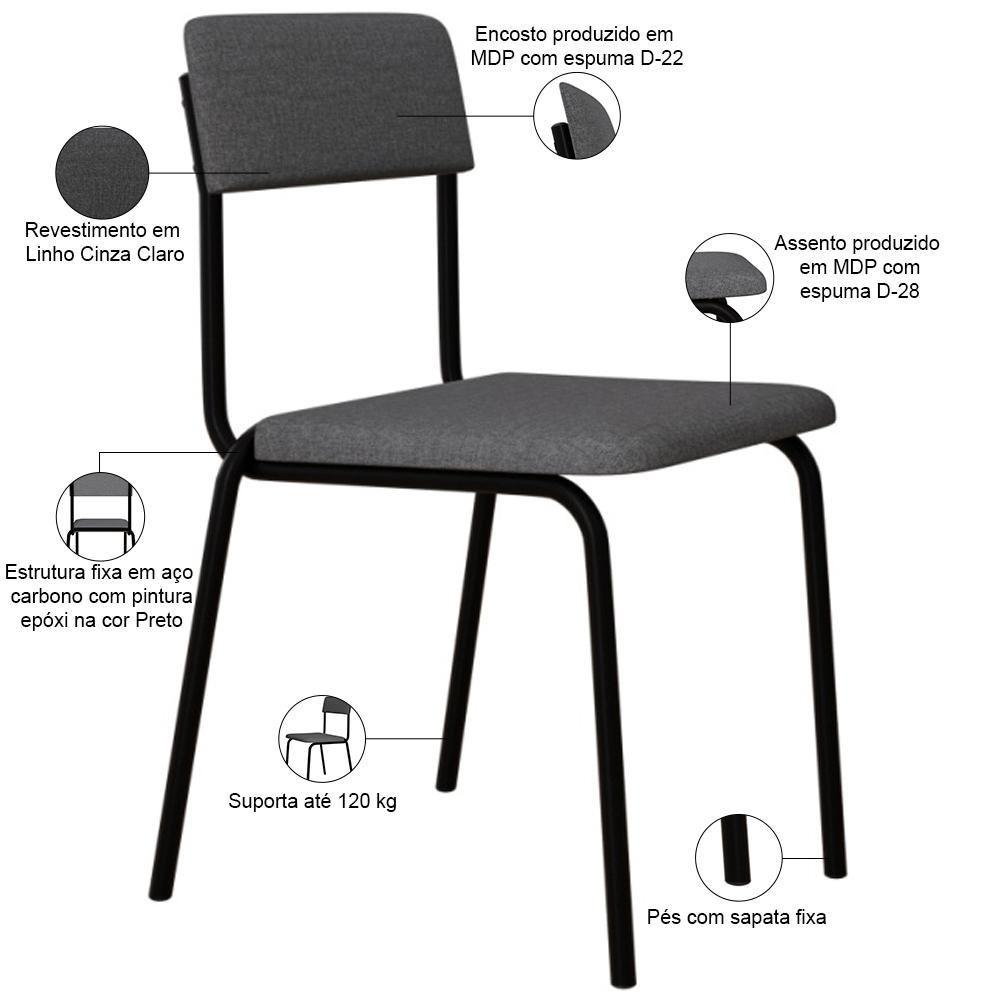 Kit 08 Cadeiras Estofada Para Sala De Jantar Sense Preto C01 Linho Cinza Claro - Lyam Decor