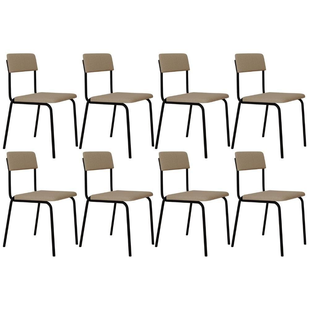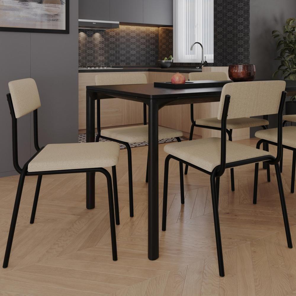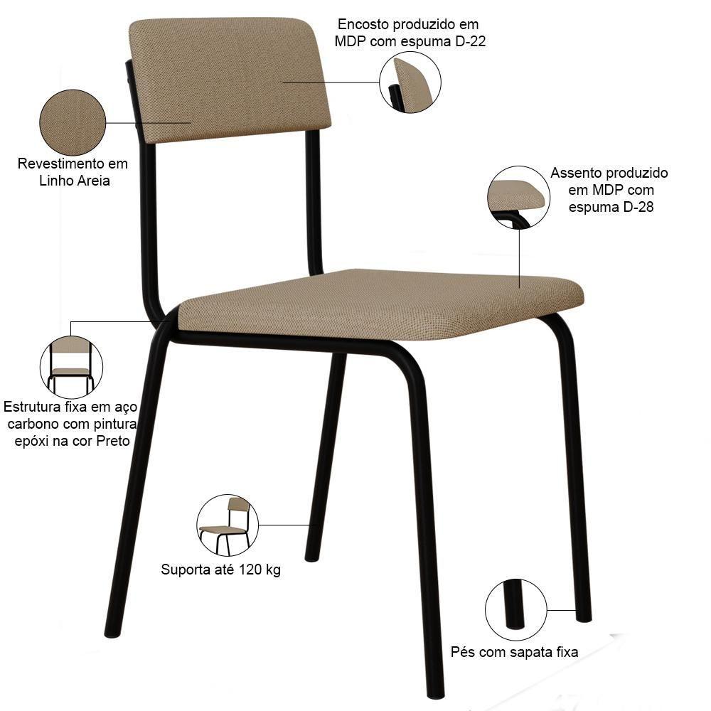 Kit 08 Cadeiras Estofada Para Sala De Jantar Sense Preto C01 Linho Areia - Lyam Decor