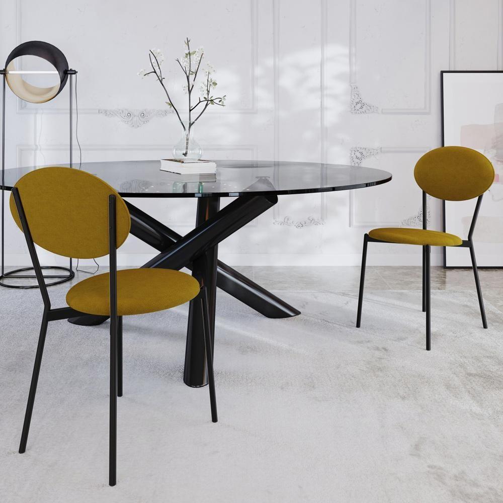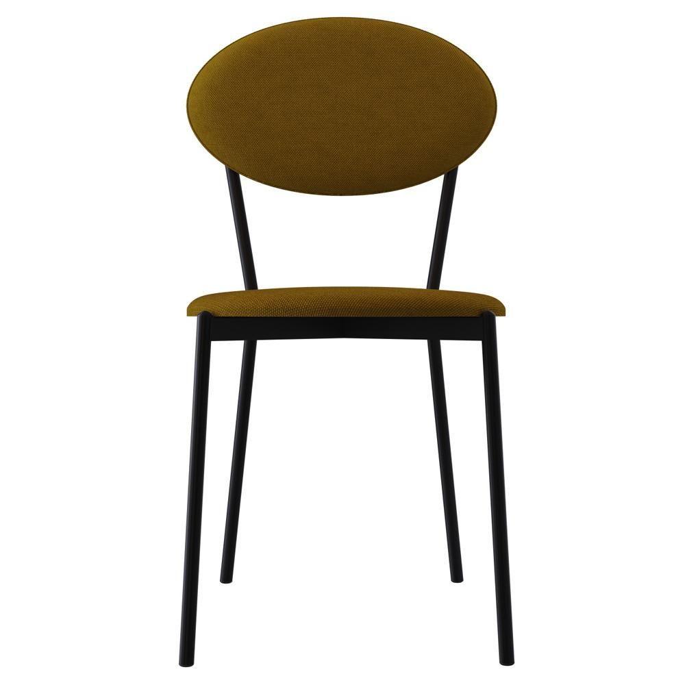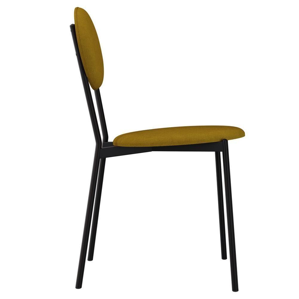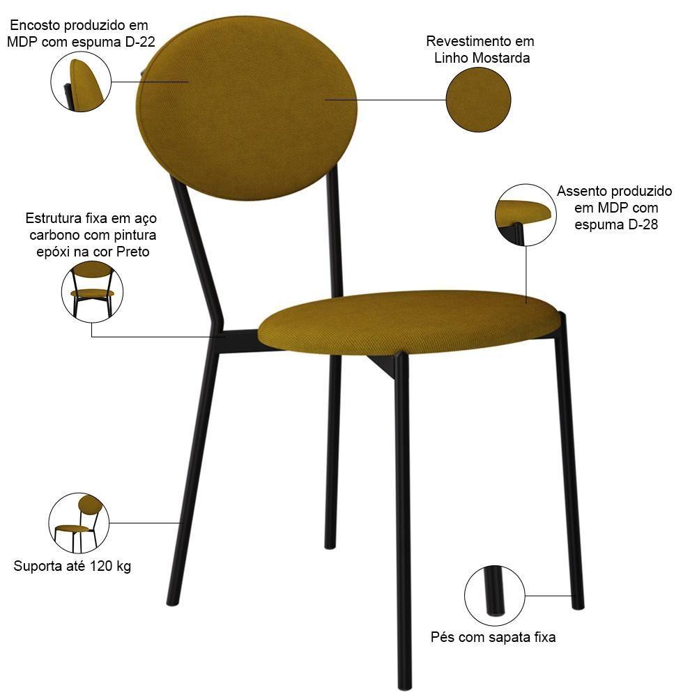 Kit 06 Cadeiras Estofada Para Sala De Jantar Azuri Preto C01 Linho Mostarda - Lyam Decor