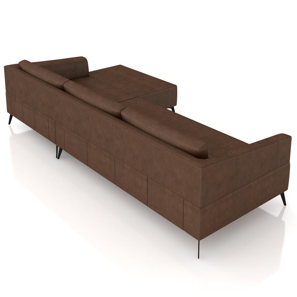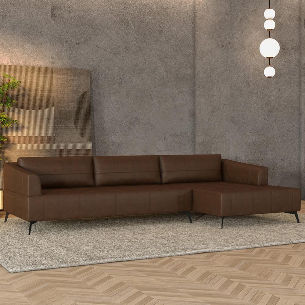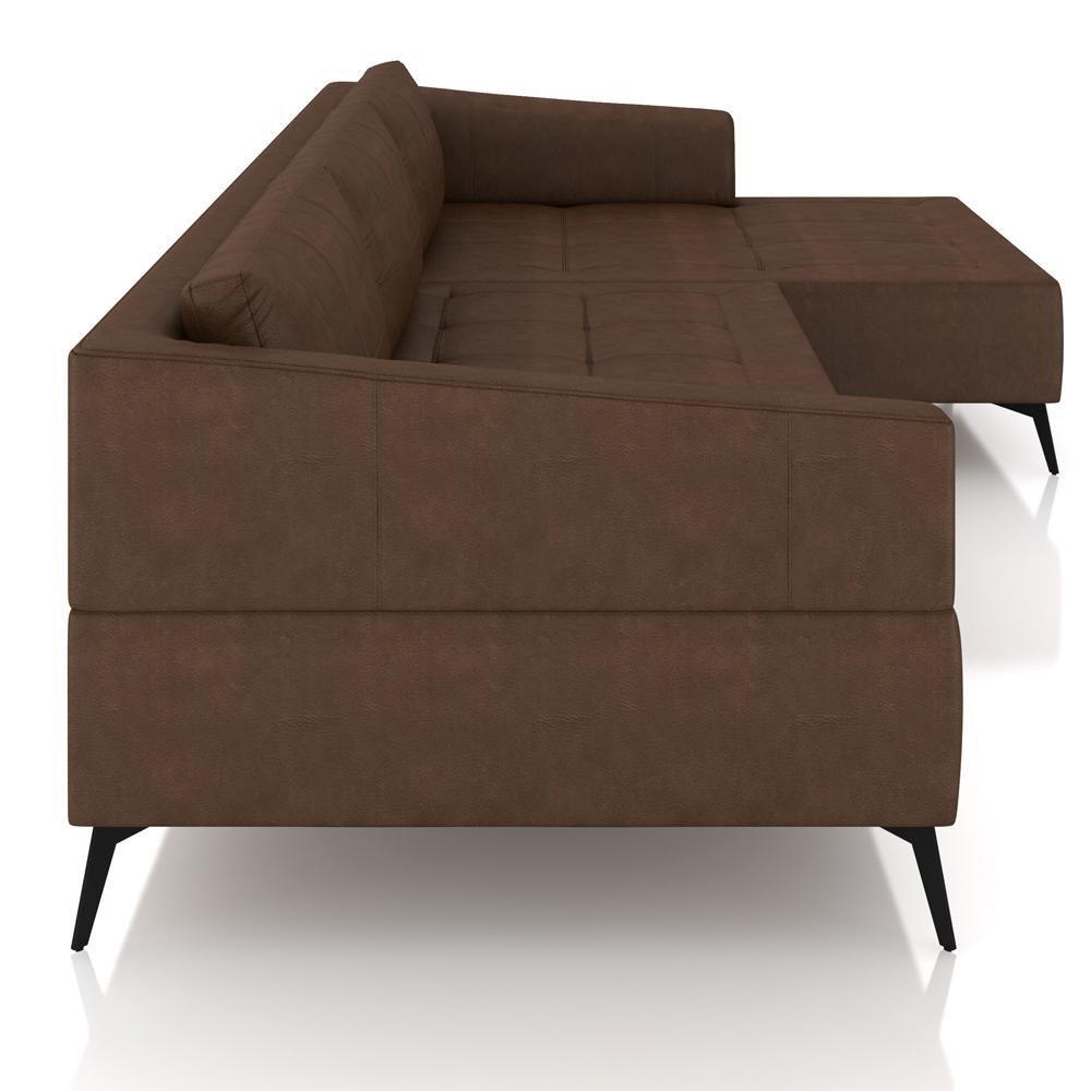 Sofá 3 Lugares Com Chaise Para Sala Living 292cm Tolstoi P08 Couro Marrom Mescla - Lyam Decor
