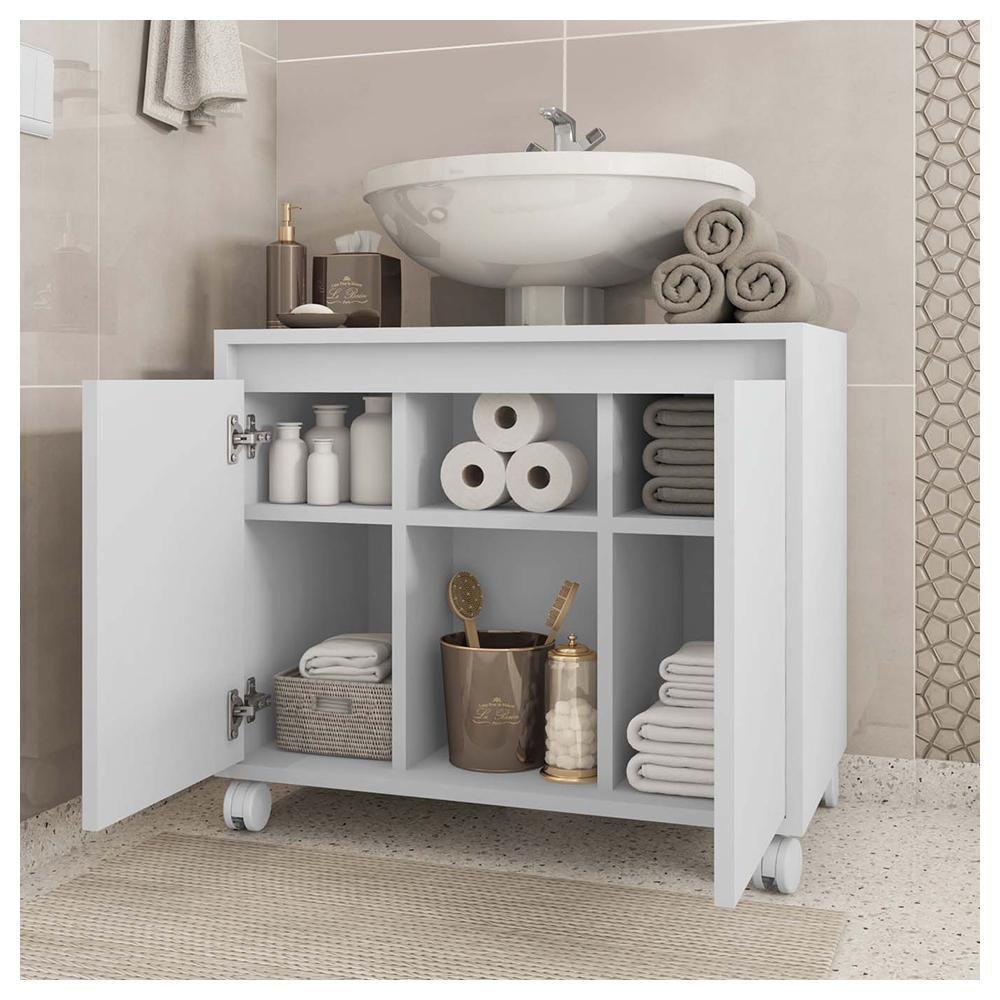 Gabinete Armário Para Banheiro Rodízios Clean Branco Caemmun