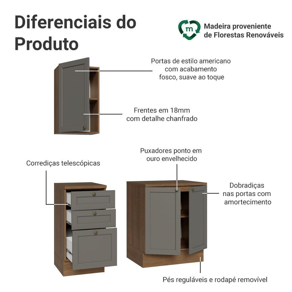 Conjunto Gabinete Para Banheiro 110cm 3 Gavetas 3 Portas Rustic/cinza Vik Madesa 01 Rustic/cinzaO conjunto de banheiro Vik da Madesa une elegância e funcionalidade em cada detalhe.A composição inclui um balcão com três gavetas e duas portas, além de um armário aéreo com uma porta, ideal para manter o ambiente sempre organizado, com espaço para produtos de higiene, toalhas ou itens decorativos.Com estrutura no tom amadeirado Rustic e frentes em Cinza, o acabamento é de alta resistência e possui textura suave ao toque, garantindo durabilidade por muito mais tempo. O destaque fica por conta dos puxadores ponto em ouro envelhecido, feitos em metal resistente, que adicionam personalidade e um charme único. O detalhe chanfrado das frentes forma molduras elegantes, inspiradas no estilo americano com um toque moderno.A linha Vik é funcional em cada detalhe, as portas possuem dobradiças com amortecimento, garantindo um fechamento suave e silencioso, enquanto as gavetas contam com corrediças que permitem abertura total, perfeitas para facilitar a organização no dia a dia.Medidas totais:- 225cm de altura- 110cm de largura- 31cm de profundidade no aéreo e 52cm no balcãoO que você recebe:- Um Balcão com duas portas e três gavetas- Um Armário aéreo com uma porta- Manual de montagem e ferragensCódigo do produto: MDBA030001F9É importante saber:- Material: MDP- Imagens meramente ilustrativas, a decoração não acompanha o produto.- A Madesa não disponibiliza de montagemA Madesa se dedica à sustentabilidade com várias iniciativas: temos uma usina própria que gera energia para uma das fábricas. Priorizamos fornecedores responsáveis com o meio ambiente. Todo o plástico utilizado na produção é reciclado, e as sobras também são reaproveitadas. Investimos no desenvolvimento de nossos colaboradores e em ações que beneficiem a comunidade. Cor: Cinza | Garantia: 3 meses contra de fabricação | Dimensões - Altura: 225 cm | Dimensões - Largura: 110 cm | Dimensões - Profundidade: 52 cm | Produto (produto): Kit Banheiro | Marca: Madesa | Peso aproximado: 62 kg | Material: MDP | Estado de Origem: RS | Conteúdo da embalagem: Kit Banheiro | Material para Filtro: MDP | Instruções/Cuidados: Utilize um pano limpo, levemente umedecido e seque em seguida a superfície. Não usar produtos químicos ou abrasivos para a limpeza. Recomendamos polir seu móvel com lustra-móveis duas a três vezes por ano. | Produto precisa de Montagem?: Sim | Peso Produto Com Embalagem (Kg): 61,73 | Altura do Produto com Embalagem (cm): 50,8 | Largura Produto Com Embalagem (cm): 53,4 | Comprimento Produto Com Embalagem (cm): 86,6 | Descrição do Tamanho: 225 cm x 110 cm x 52 cm | Nome do Simples no Fornecedor: Conjunto Gabinete para Banheiro 110cm 3 Gavetas 3 Portas Rustic/Cinza Vik Madesa 01 | Fabricante: Madesa | RBN: Casa/Móveis/Móveis para Banheiro/Conjuntos de Móveis para Banheiro | Materiais do corpo: MDP | Quantidade de caixas de embalagem: 7 | Bullet Point 1: Dimensões: 225 cm altura x 110 cm largura x 52 cm profundidade | Bullet Point 2: Os puxadores ponto em ouro envelhecido, feitos em metal resistente, que adicionam personalidade e um charme único. | Bullet Point 3: O detalhe chanfrado das frentes forma molduras elegantes, inspiradas no estilo americano com um toque moderno. | Bullet Point 4: Possui acabamento de alta resistência, conservando a beleza do móvel por muito mais tempo. | É Frágil: Não | Quantidade de itens (number_of_items): 1 | Certificação de teste externa (external_testing_certification): Sim | Precisa de baterias ou pilhas: Não | da peça (part_number): MDBA030001F9 | Peso do item (item_weight): ;unit=kilograms | Dimensões do item P x L x A (item_depth_width_height): depth#value=52;depth#unit=centimeters;height#value=225;height#unit=centimeters;width#value=110;width#unit=centimeters | Exige montagem (is_assembly_required): Sim | Requer montagem (REQUIRES_ASSEMBLY): Sim | Inclui manual de montagem (INCLUDES_ASSEMBLY_MANUAL): Sim | do modelo (model_number): MDBA030001F9 | is_assembly_required: Sim | Inclui pia: Não | Inclui espelhos: Não | Componentes incluídos (included_components): Portas | Cor: Rustic/Cinza