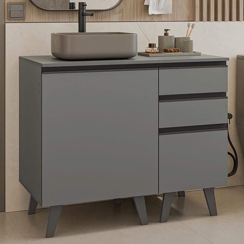 Gabinete Para Banheiro 100cm 1 Porta 3 Gavetas Nice Madesa 04 Cinza