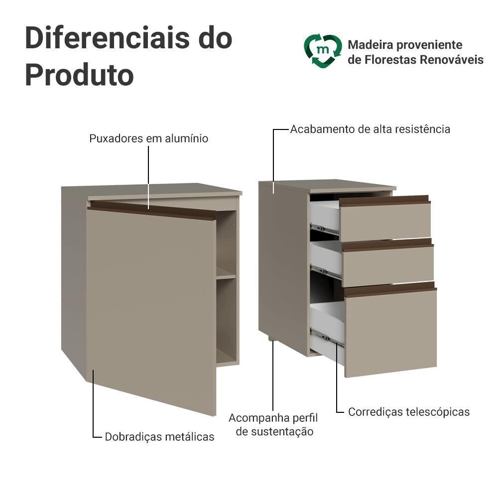 Gabinete Suspenso Para Banheiro 100cm 1 Porta 3 Gaveta Nice Madesa 03 Crema