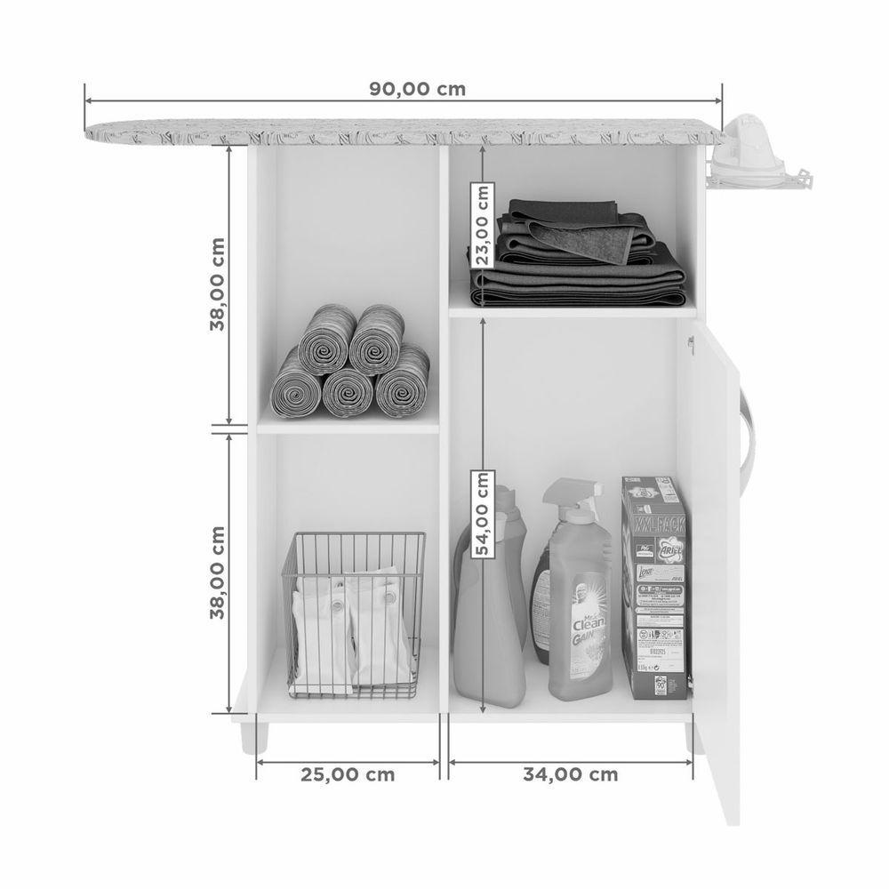 Tábua De Passar Pluméria Branco - MoveisaquiCompacta e funcional, a Tábua Pluméria - Moveisaqui, é idela para os pequenos espaços. Contribui perfeitamente para manter a organização do dia-a-dia na área de , com suporte aramado para o ferro de passar, proporciona mais para as taferas, e ainda conta com nichos e uma porta para manter a organização.Dimensões do Produto montado:Altura: 87 cmLargura: 104 cmProfundidade: 29 cmObservações:- Uma portas;- Suporte para ferro elétrico;- Tampo com espuma e tecido;- Nichos para apoio;- Pintura Ultravioleta com acabamento brilho.