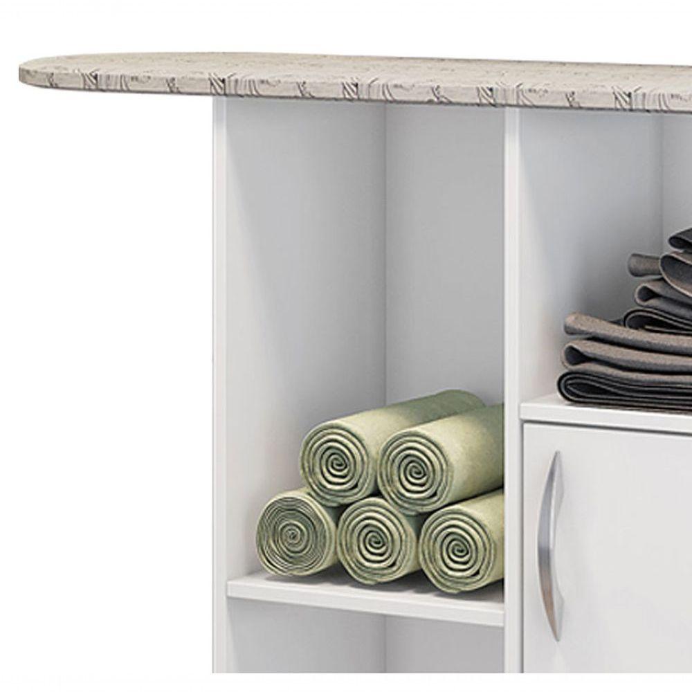 Tábua De Passar Florence Branco - NotávelCompacta e funcional, a Tábua Florence - Notável, é idela para os pequenos espaços. Contribui perfeitamente para manter a organização do dia-a-dia na área de , com suporte aramado para o ferro de passar, proporciona mais para as taferas, e ainda conta com nichos e uma porta para manter a organizaçãões do Produto montado:Altura: 87 cmLargura: 104 cmProfundidade: 29 cmObservações:- Uma portas;- Suporte para ferro elétrico;- Tampo com espuma e tecido;- Nichos para apoio;- Pintura Ultravioleta com acabamento brilho.
