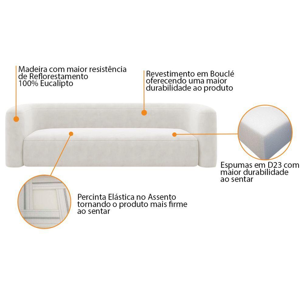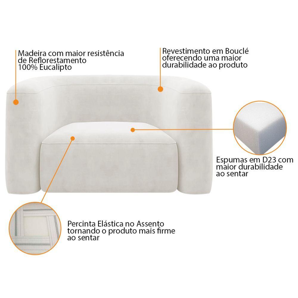 Kit Sofá 3 Lugares 180cm E Poltrona Orgânica Luxo Recepção Melina Bouclé Branco