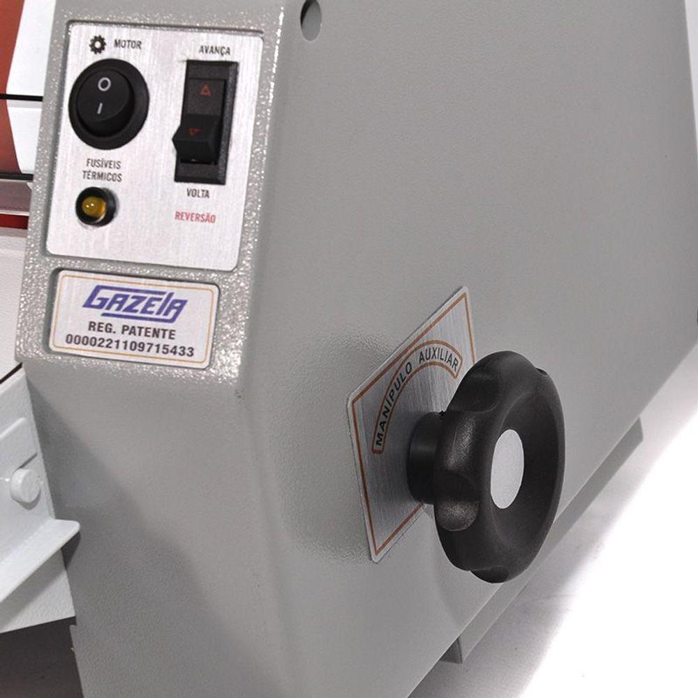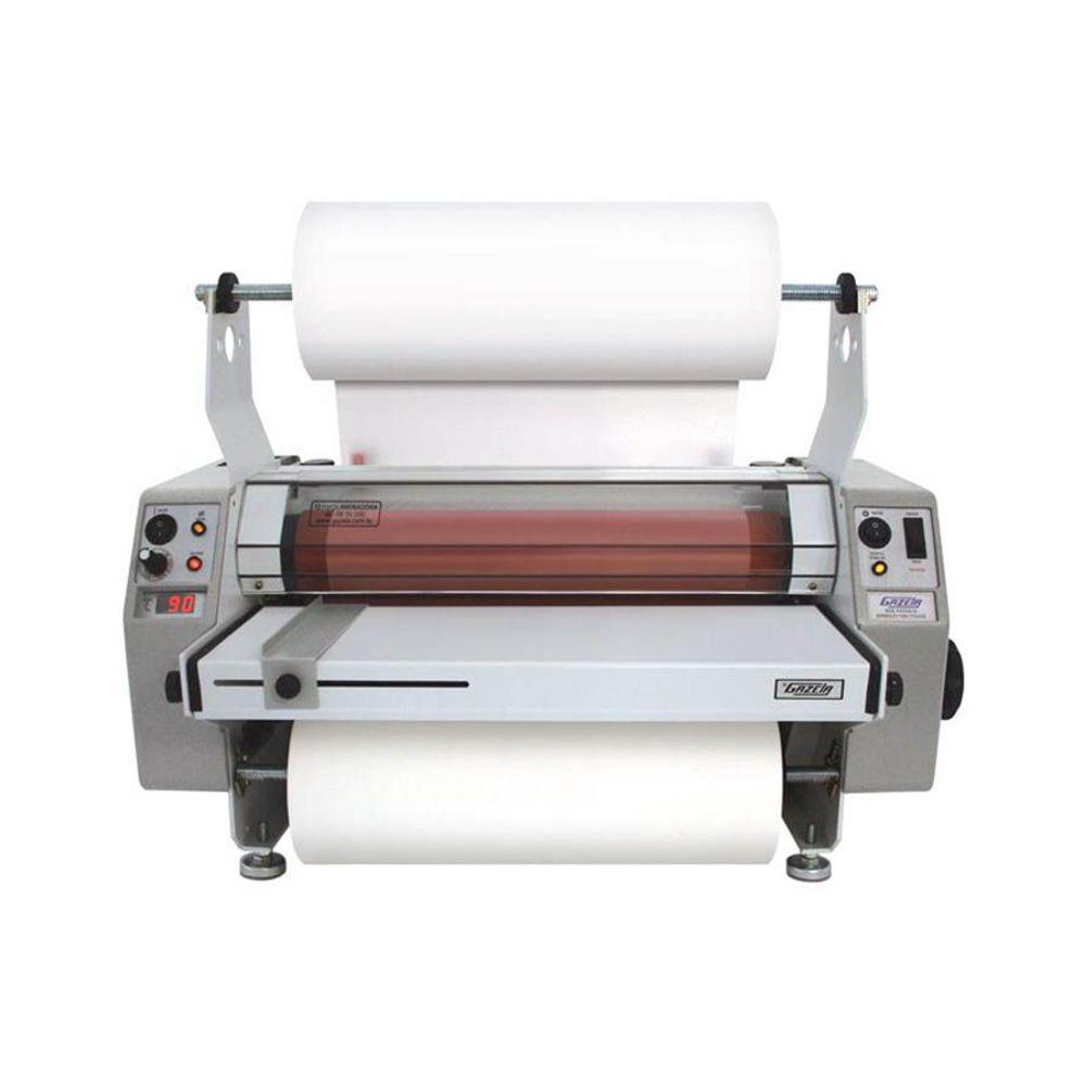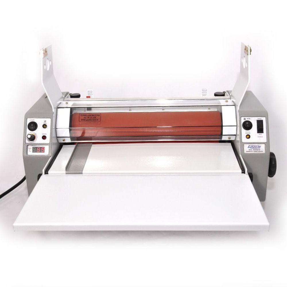 Termolaminadora Gazela Super A3 Bopp Polaseal AC 08.35.200 220VA termolaminadora Gazela é uma laminadora que faz plastificação e aplicação do BOPP, um fina película em documentos, folhetos, impressos, cartões de visita, banners, fotografias, impresso digitais e etc, Pode laminar somente um dos lados ou os dois lados. Esta laminação torna os documentos impermeável com um acabamento perfeito.A linha de termolaminadoras AC08 garante a mais alta qualidade em s de termolaminação. Possui cilindro de silicone com aquecimento interno e um exclusivo sensor térmico móvel patenteado, que permite ao equipamento trabalhar por longos períodos de tempo sem risco de superaquecimento. Preparada para atender trabalhos que exijam plastificações mais perfeitas, em fotos e books principalmente, com a agilidade que o mercado exige.Por ser bastante versátil, atende também a vários outros segmentos, como gráficas digitais e offset. A linha AC08 é versátil e trabalha com BOPP, Polaseal, Poliéster e Verniz térmico. Possui programador de temperatura e visor do termômetro digital para facilitar o controle e a visualização da temperatura.Características do Produto:Termolaminadora AC08 Modelo AC 08.35.200Plastifica/Lamina até o formato super A3 (35cm de Largura)Velocidade progressiva de 30 a 200m/hResistência em Quartzo: Produz aquecimento rápido e homogêneo dos cilindrosLaterais Diaelétricas e Antitérmicas: Garante isolamento térmico do equipamentoSistema de Ventilação Acoplado: Permite resfriamento parcial das plastificaçõesPedal de Acionamento : Oferece mais mobilidade e conforto para o operadorPintura Eletros: Resistente, garante durabilidade à aparência da termolaminadoraSuporte para Bobinas de até 500 Metros: Aumenta a opção de compra e utilização de suntos.Especificações técnicas:Largura máxima de plastificação: 35cm (até formato A3)Velocidade: Progressiva de 30 a 200m/hSuntos: BOPP , Polaseal, Poliéster e Verniz térmicoVoltagem: 220vItens Inclusos: 01 Termolaminadora AC08 Modelo AC 08.35.200Marca: GazelaGarantia: 03 meses após o do produto