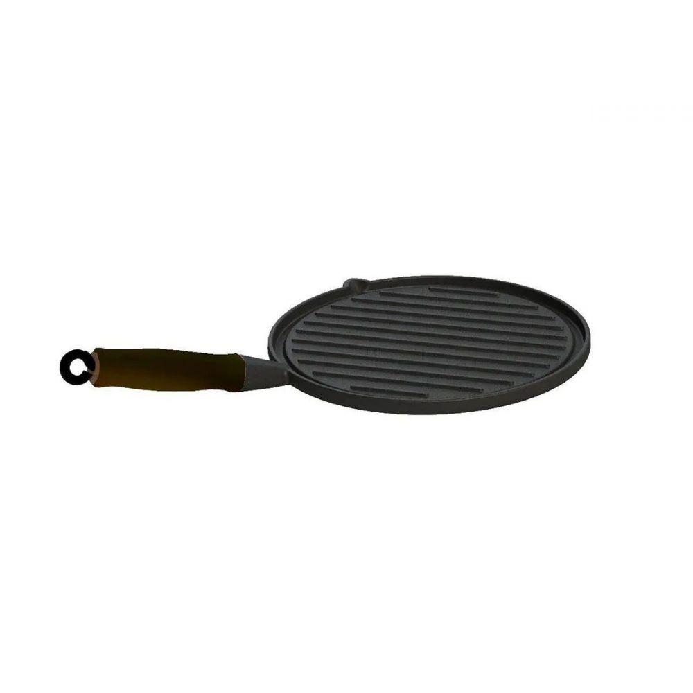 Bifeteira Ferro Redonda Cabo Silicone Preto Estriada 26cm.
