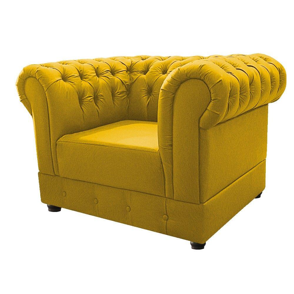Kit Poltrona e Namoradeira Chesterfield Ana Suede Amarelo