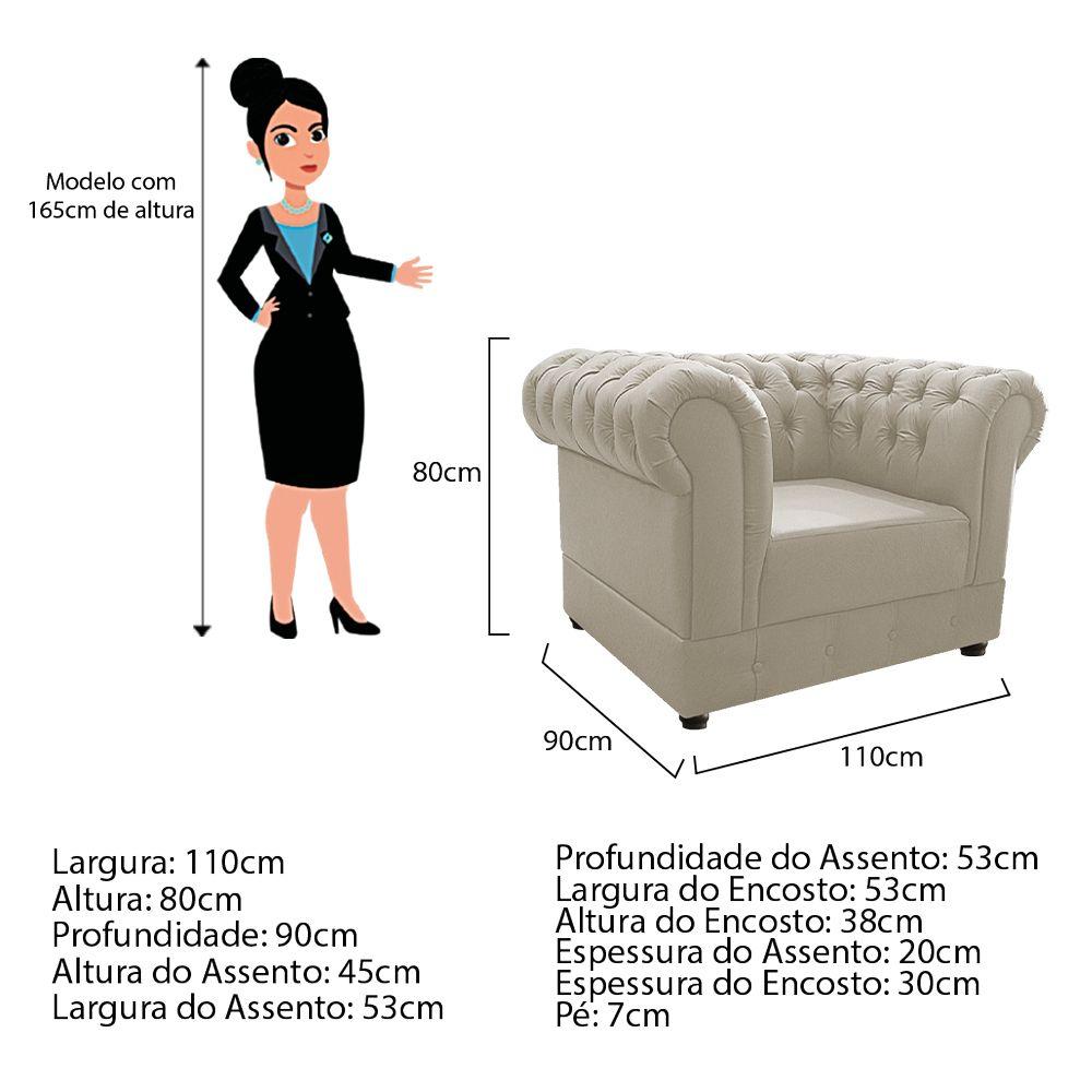 Poltrona e Namoradeira Chesterfield Ana Suede Bege Adj Decor