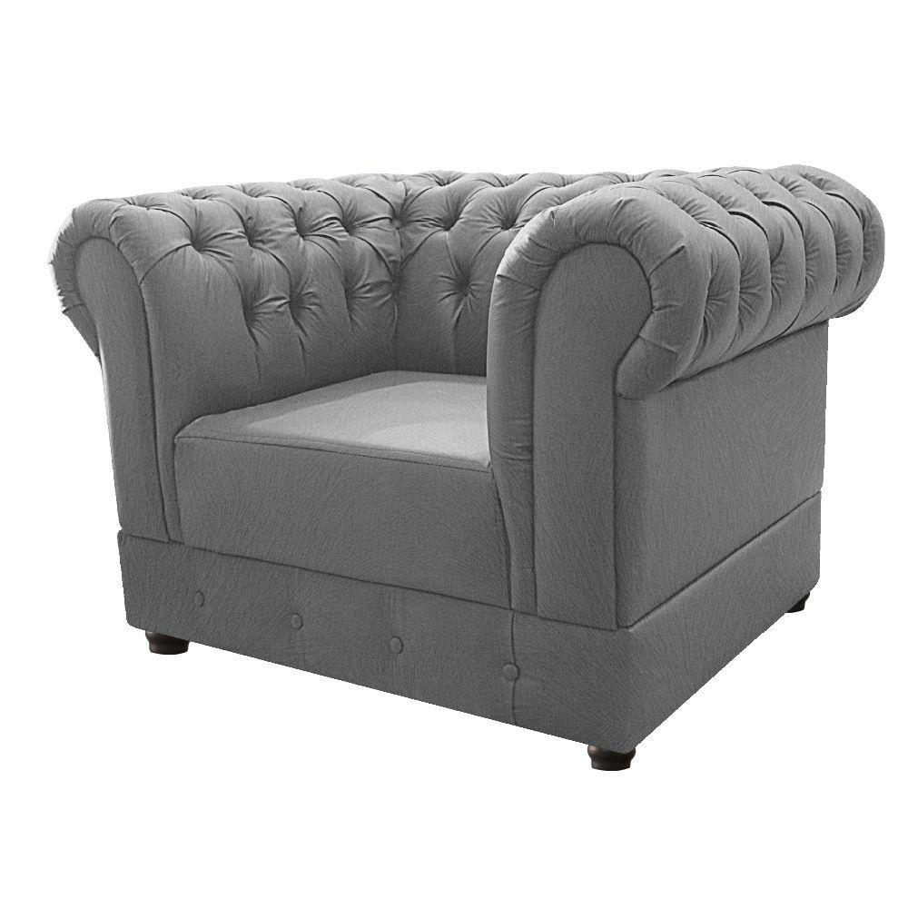 Kit Poltrona e Namoradeira Chesterfield Ana Suede Cinza