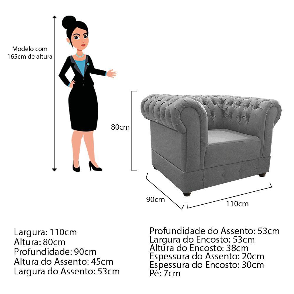 Kit Poltrona e Namoradeira Chesterfield Ana Suede Cinza Adj DecorSe Você Está Procurando Conforto e Elegância, o kit Poltrona e Namoradeira Chesterfield Ana é Perfeito Para Você, Clique e Confira!Com uma estrutura e beleza única, o kit Poltrona e Namoradeira Chesterfield Ana se adapta em qualquer ambiente, tornando-o ainda mais elegante e harmonioso. Um kit luxuoso de alta qualidade, dará um toque especial em seu ambiente. Não perca essa oportunidade de levar mais charme e requinte ao seu cômodo, adquira já o seu!Especificações Técnicas da Poltrona Chesterfield Ana:-Altura: 80 Cm;-Largura: 110 Cm;-Profundidade: 90 Cm;-Altura do Assento: 45 Cm;-Largura do Assento: 53 Cm;-Profundidade do Assento: 53 Cm;-Largura do Encosto: 53 Cm;-Altura do Encosto: 38 Cm;-Espessura do Assento: 20 Cm;-Espessura do Encosto: 30 Cm;-Altura dos Pés: 7 Cm;-Peso: 25 Kg.-Peso Suportado: 120 Kg.-Peso Suportado: 120 Kg.Especificações Técnicas da Namoradeira Chesterfield Ana:-Altura: 80 Cm;-Largura: 185 Cm;-Profundidade: 90 Cm;-Altura do Assento: 45 Cm;-Largura do Assento: 128 Cm;-Profundidade do Assento: 53 Cm;-Largura do Encosto: 128 Cm;-Altura do Encosto: 38 Cm;-Espessura do Encosto: 30 Cm;-Espessura do Assento: 20 Cm;-Altura dos Pés: 7 Cm;-Peso: 30 Kg.-Peso Suportado: 120 Kg.Diferenciais do Kit Poltrona e Namoradeira Chesterfield Ana:-Material da Estrutura: Fabricado com Madeira Pinus e Eucalipto Reflorestada, e alguns detalhes em MDF;-Tipo de Assento: Estofado e com espuma de densidade D-26;-Tipo de Encosto: Estofado e com espuma de densidade D-18;-Detalhes do Tecido: Possui detalhes em capitonê, onde os botões são revestidos no mesmo tecido do produto e finalizados com excelente acabamento;-Detalhes dos Pés: Acompanha kit de pés (4 pés para cada produto) de madeira, com alta resistência;-Volumes: Nessa compra você receberá UMA POLTRONA E UMA NAMORADEIRA. ATENÇÃO: a transportadora pode entregá-las juntas ou separadas, nesse último caso, inclusive com dias de diferença na .Recomendações de limpeza:-Limpar com flanela limpa e seca. Não molhar o móvel e não expor em lugar úmido ou próximo de fontes de calor. Não usar produtos abrasivos.Observações Importantes:- As imagens ambientadas são meramente ilustrativas e podem apresentar itens que não compõe o produto;- Objetos decorativos que aparecem na foto não acompanham o produto;- As cores do produto podem variar de acordo com o monitor, a iluminação do ambiente, ou sua percepção visual;- A Poltrona Decorativa Chesterfield Ana chegará montada para você, bastando rosquear os pés;- A Namoradeira Decorativa Chesterfield Ana chegará montada para você, bastando rosquear os pés;- Confira as dimensões antes da compra e certifique-se de que o produto passará por elevadores, portas e corredores, já que nossa não inclui a subida de lances de escada, ou o de produtos;- Ao receber seus produtos, verifique no ato do qualquer dano na embalagem. Caso tenha alguma , favor não assinar o de (A transportadora tem obrigação de esperar a conferência);- Produto para uso residencial em ambiente interno, não devendo ficar exposto diretamente ao sol, calor e umidades excessivas.Marca :ADJ DECOR Garantia :90 Dias após o do produto