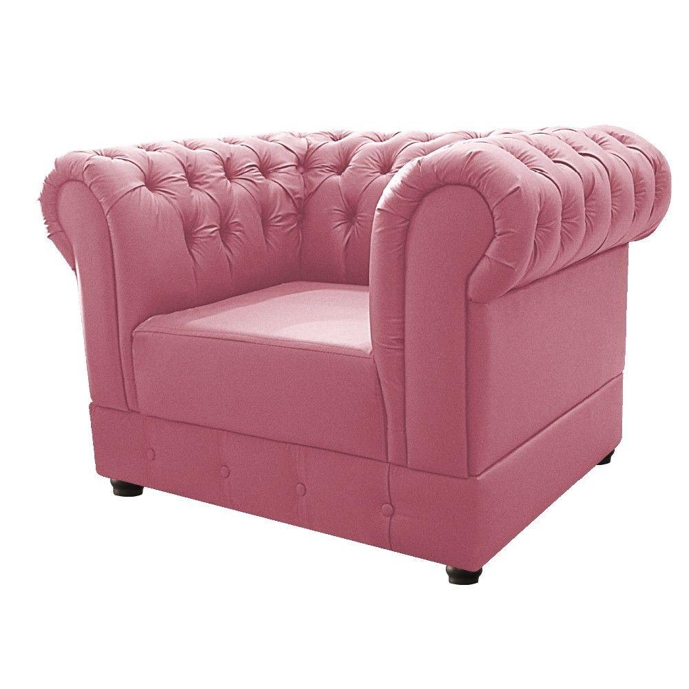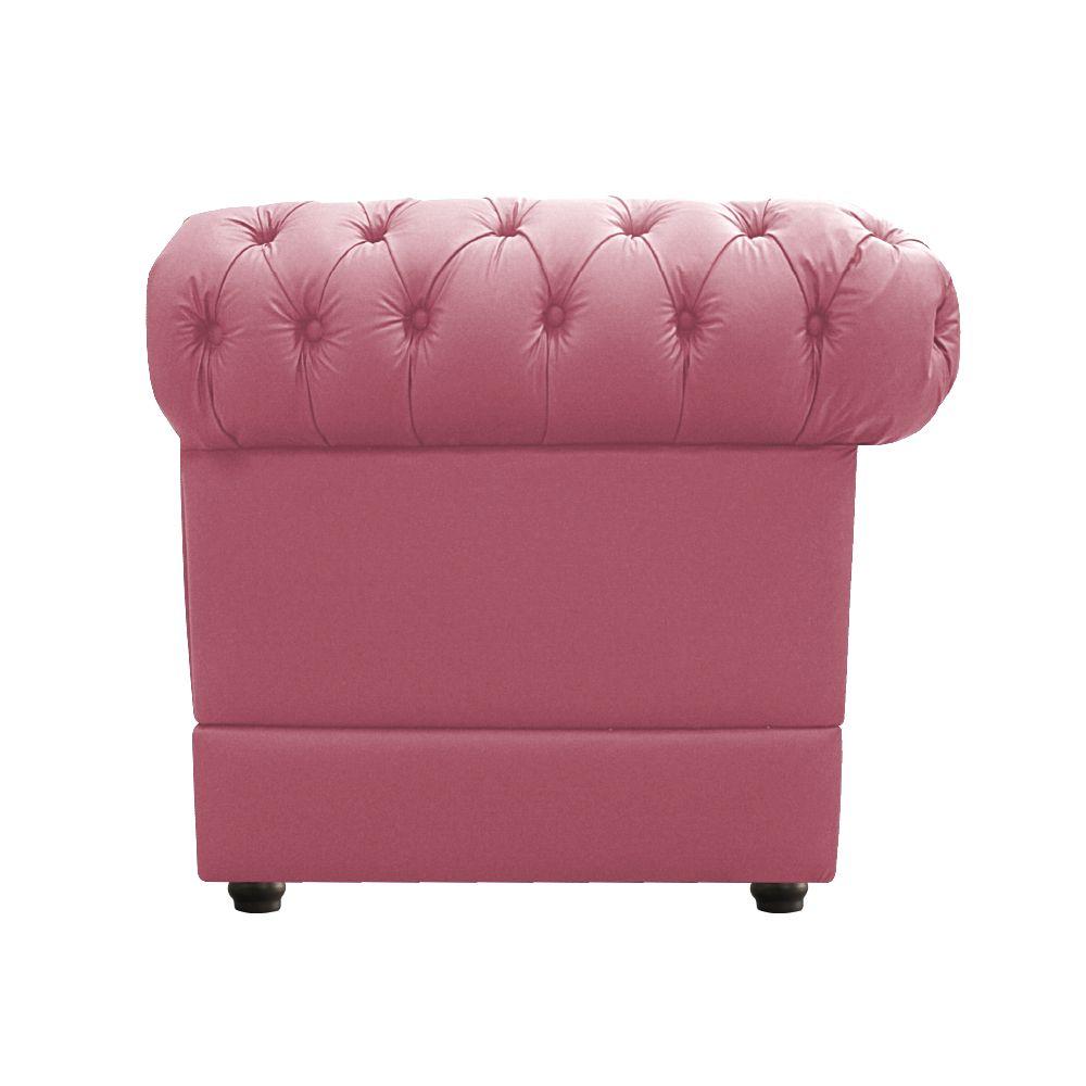 Kit Poltrona e Namoradeira Chesterfield Ana Suede Rosa Bebê