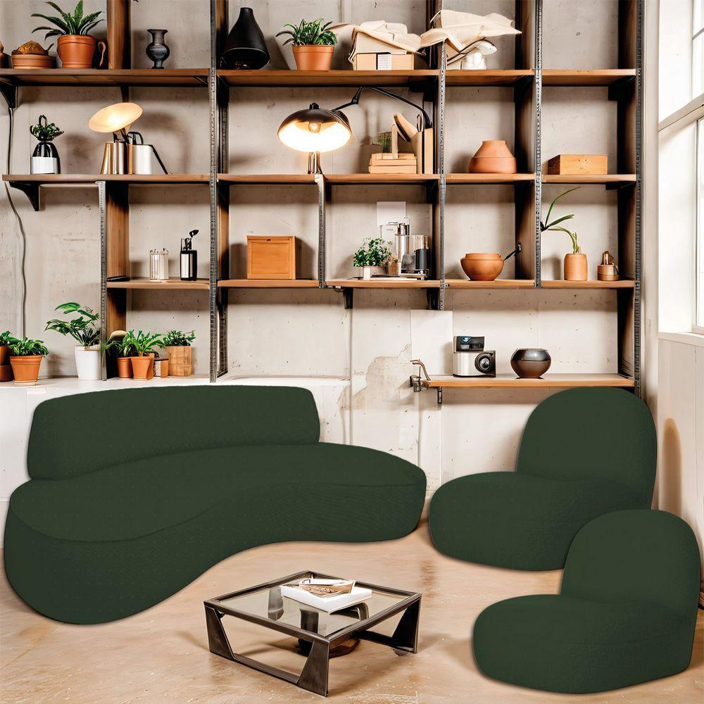 Sofá Curvo 140cm 2 Lugares E 2 Poltrona Amsterdã Linho - Adj Decor Cor Verde