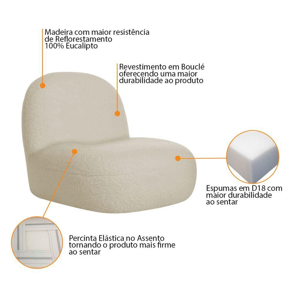 Sofá Curvo 160cm 2 Lugares E 2 Poltrona Amsterdã Bouclé - Adj Decor Cor Bege