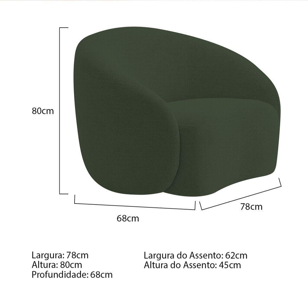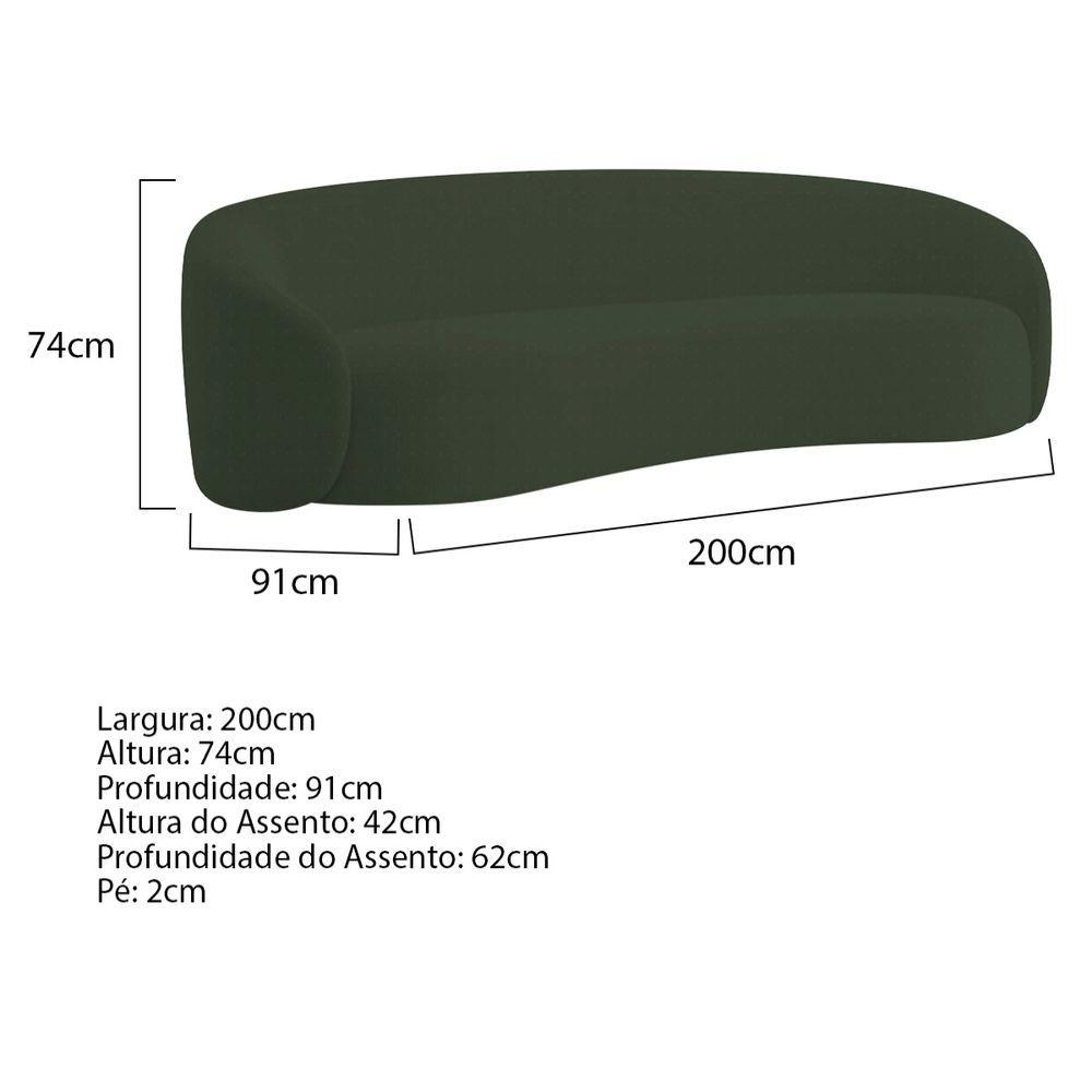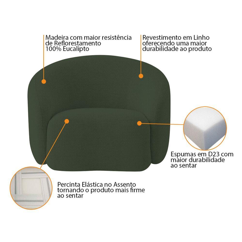 Kit Sofá 3 Lugares 200cm E 2 Poltronas Orgânica Luxo Recepção Amore Linho Adj Decor Verde
