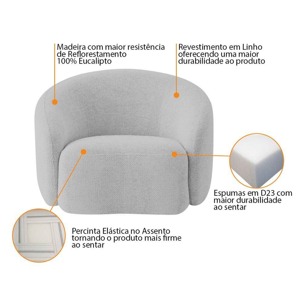 Kit Sofá 3 Lugares 200cm E 2 Poltronas Orgânica Luxo Amore Linho Cinza