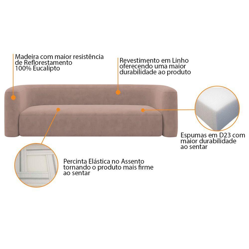 Kit Sofá 2 Lugares 160cm E Poltrona Orgânica Luxo Recepção Melina Linho Rosê