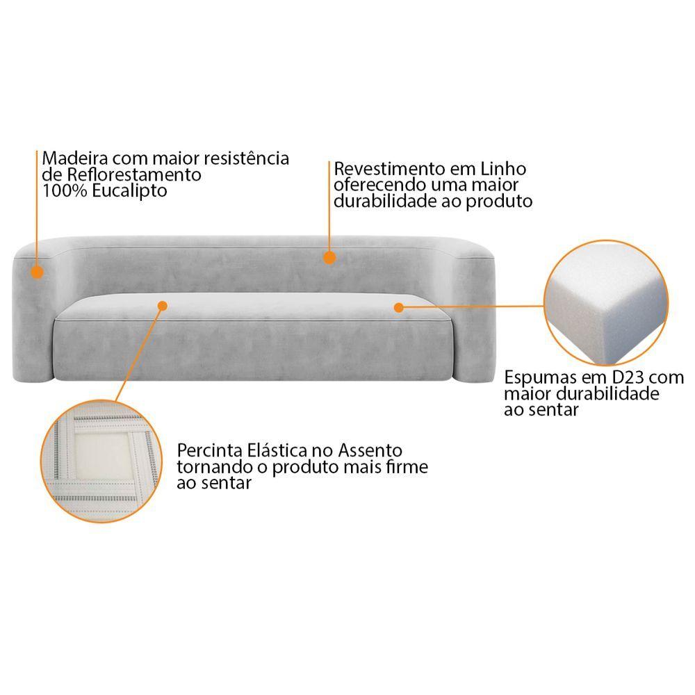Kit Sofá 3 Lugares 180cm E Poltrona Orgânica Luxo Recepção Melina Linho Adj Decor Cinza