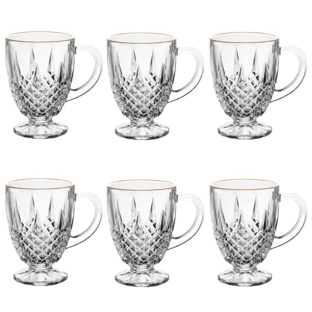 Conjunto De Xícara De Café-cappuccino 6 Peças 150 Ml Diamante Com Fio De Ouro Lyor