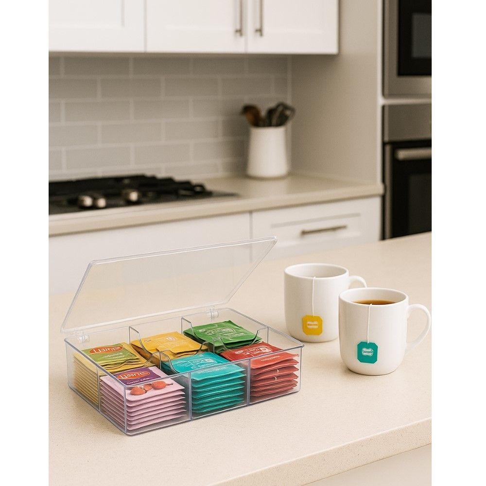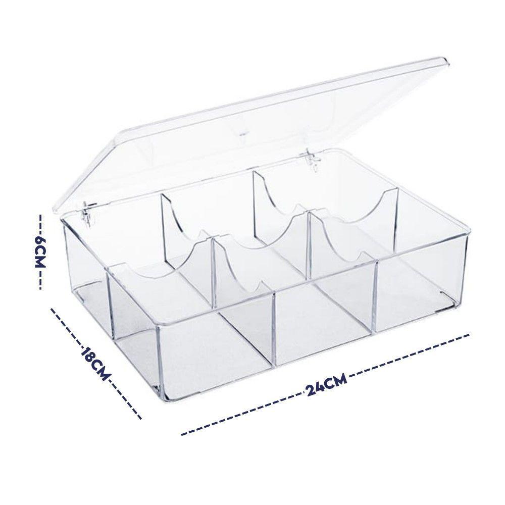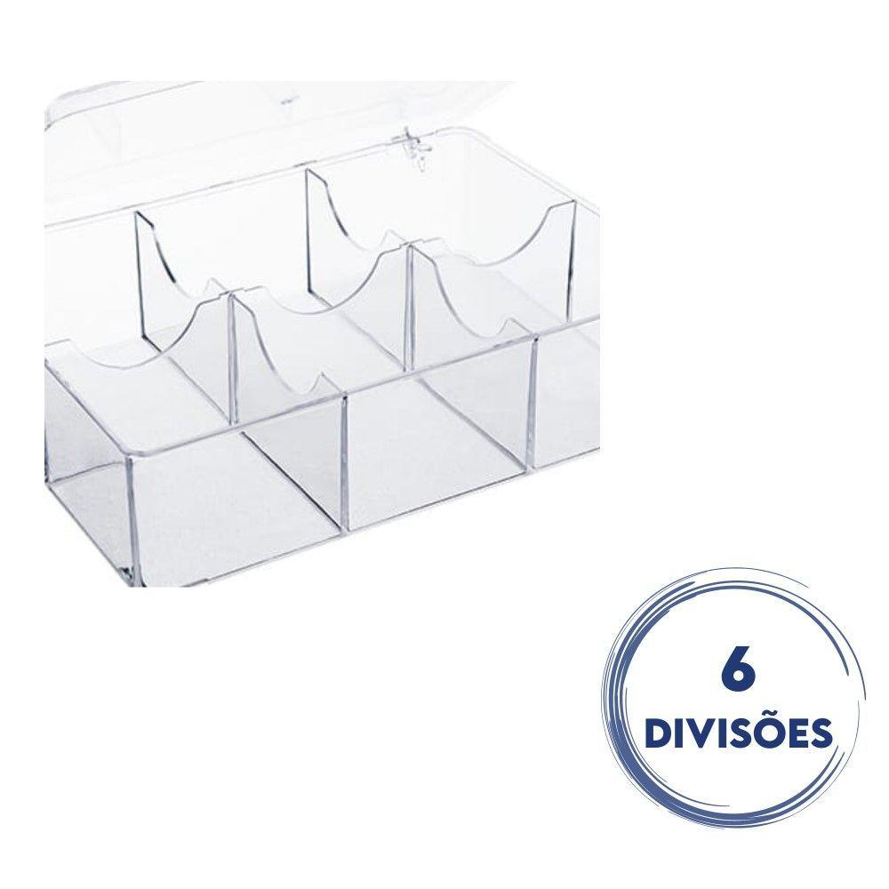 Caixa Acrílica Organizadora Sachês De Chá/açúcar 6 Divisórias Domama