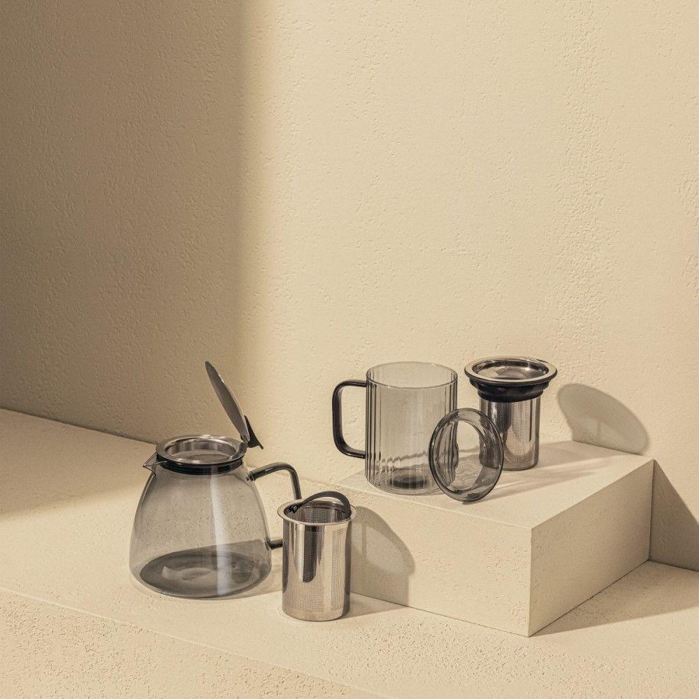 Bule Para Chá 1l Em Vidro E Aço Inox Com Infusor Fumê Oxford