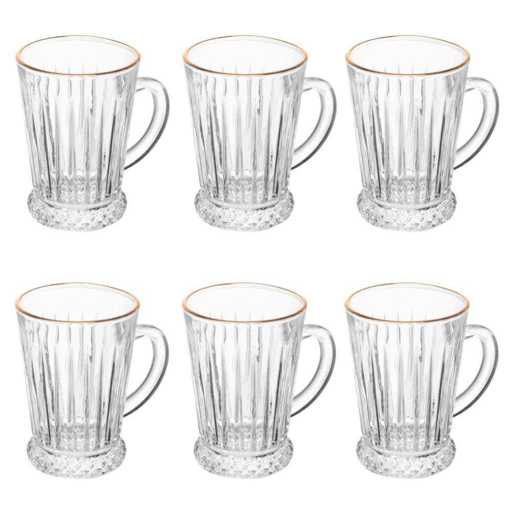 Conjunto Taça Para Cappuccino 6 Peças 210 Ml Deli Diamante Com Fio De Ouro Lyor